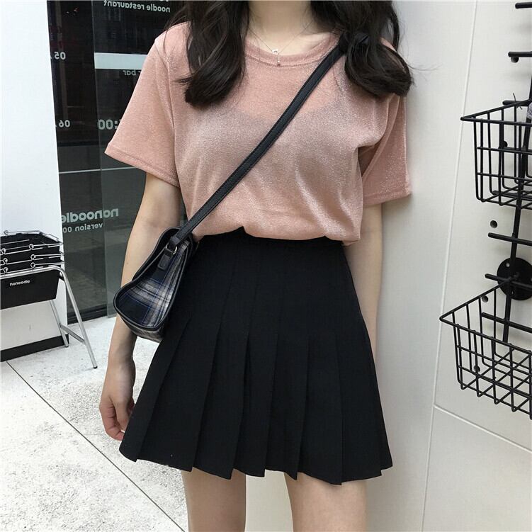 サマーハイウェストウェストプリーツスカート ソリッド カラースリムAラインカジュアルショート 夏物 ソリッドカラー モンロー4474524