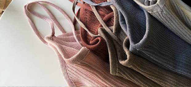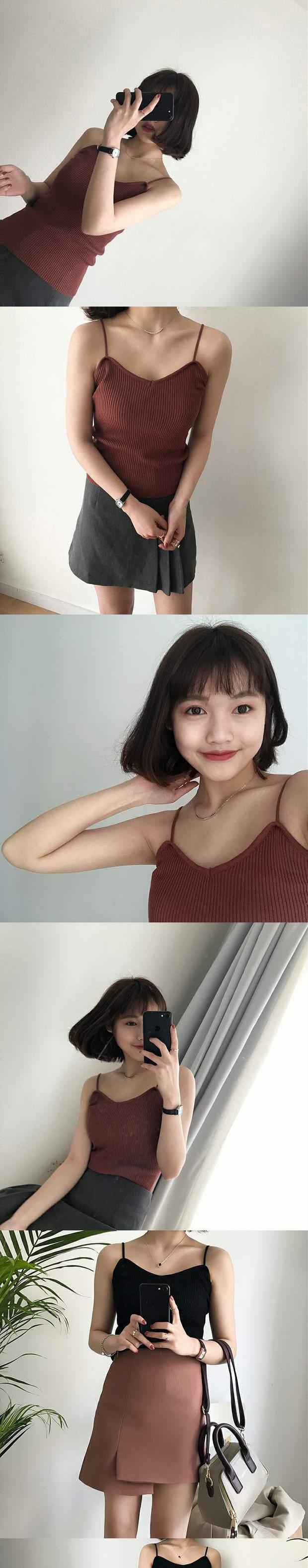 ノースリーブショートニットVネックレッドシャツ サマートップス 夏物 モンロー4900660