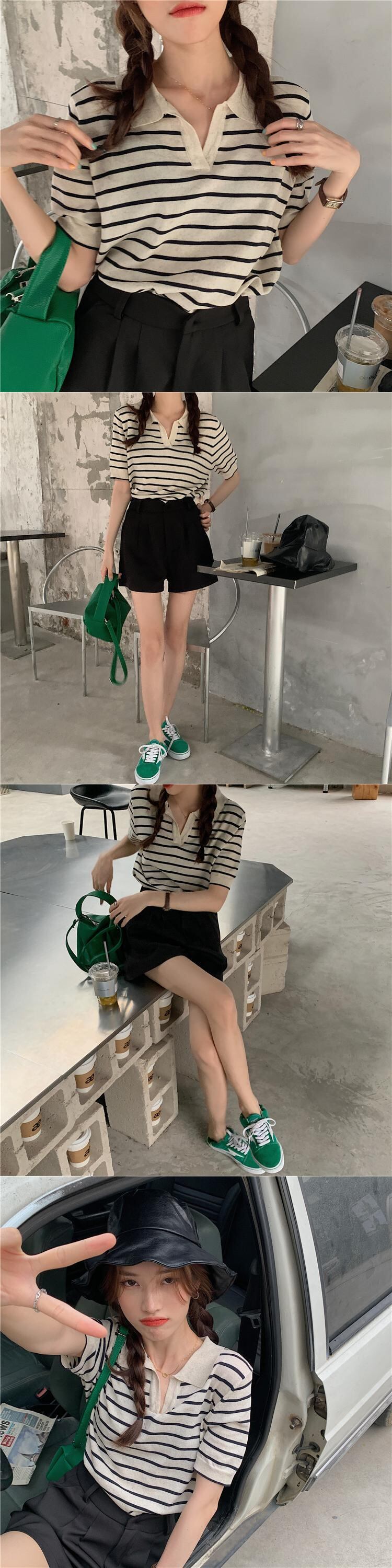 スタイル薄手ストライプセーター シャツ スプリングサマーショートトップス 春物 夏物 モンロー7323333726
