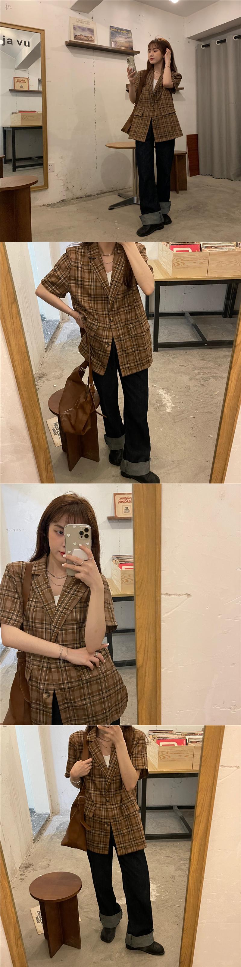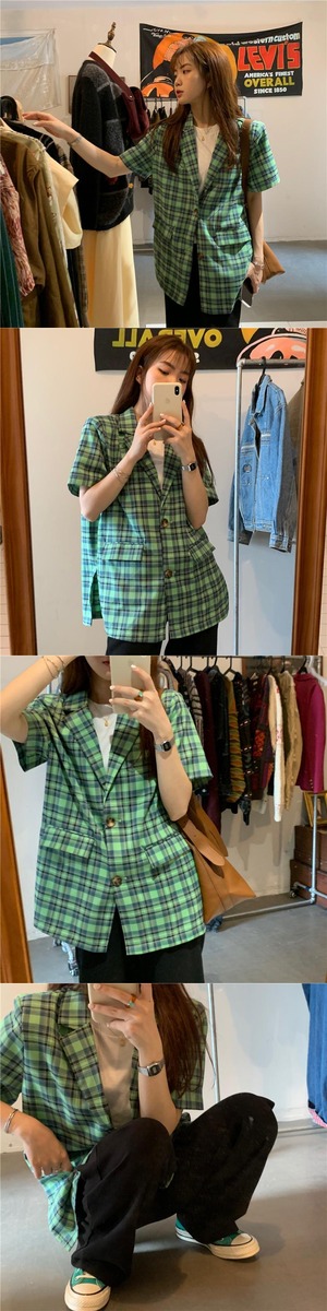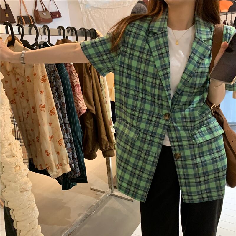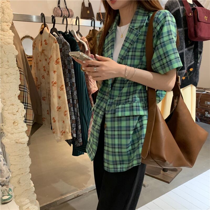 スタンダードグリーン格子柄シャツ レディーススプリングサマージャケット レトロ 春物 夏物 モンロー44359591929