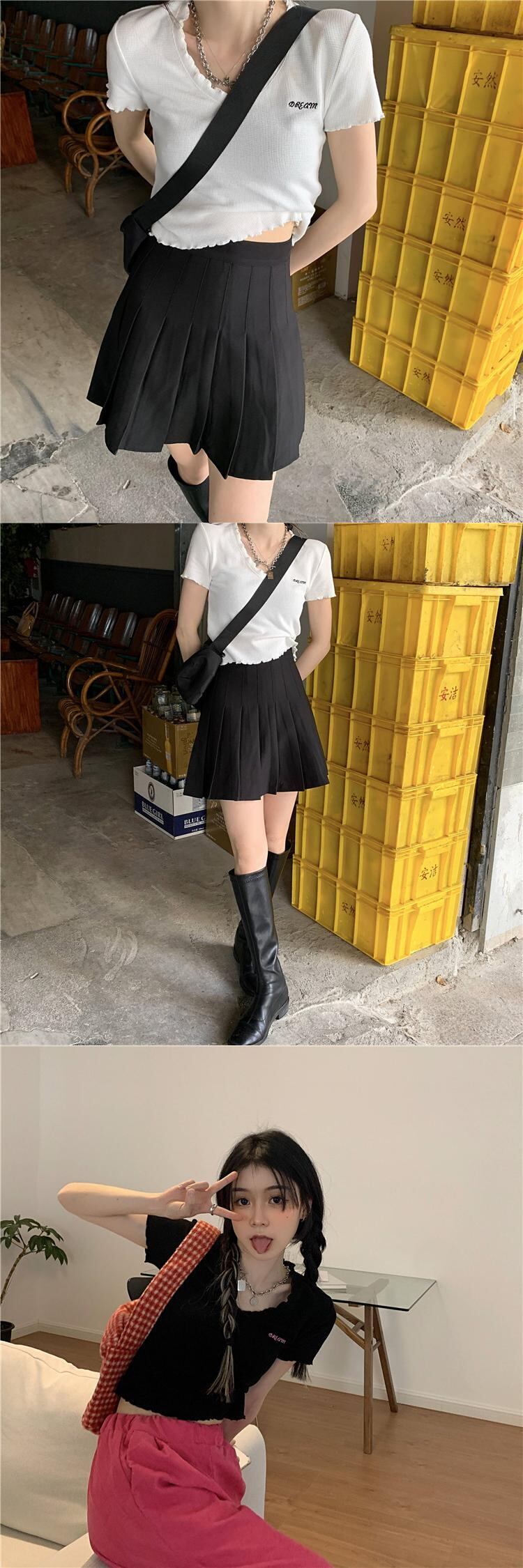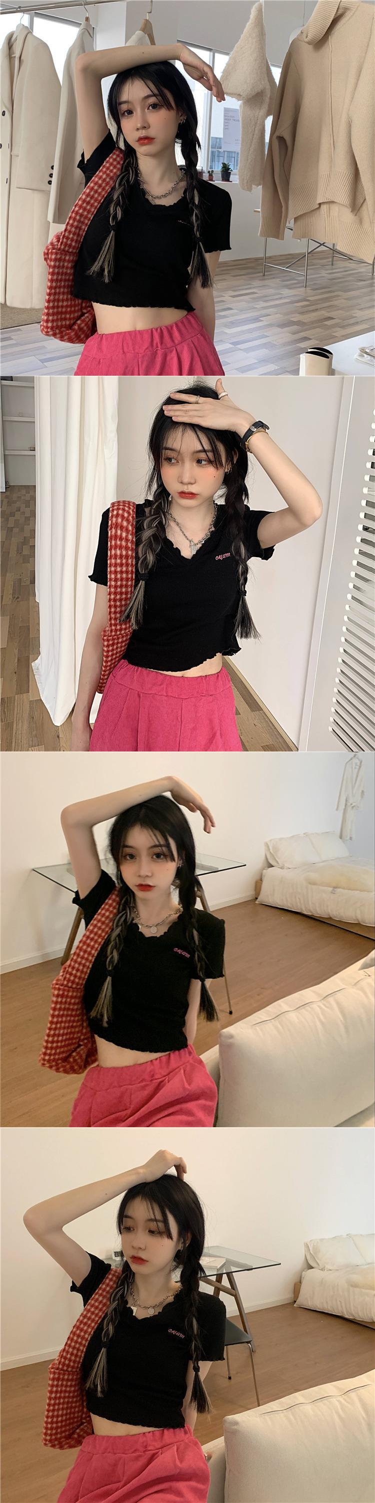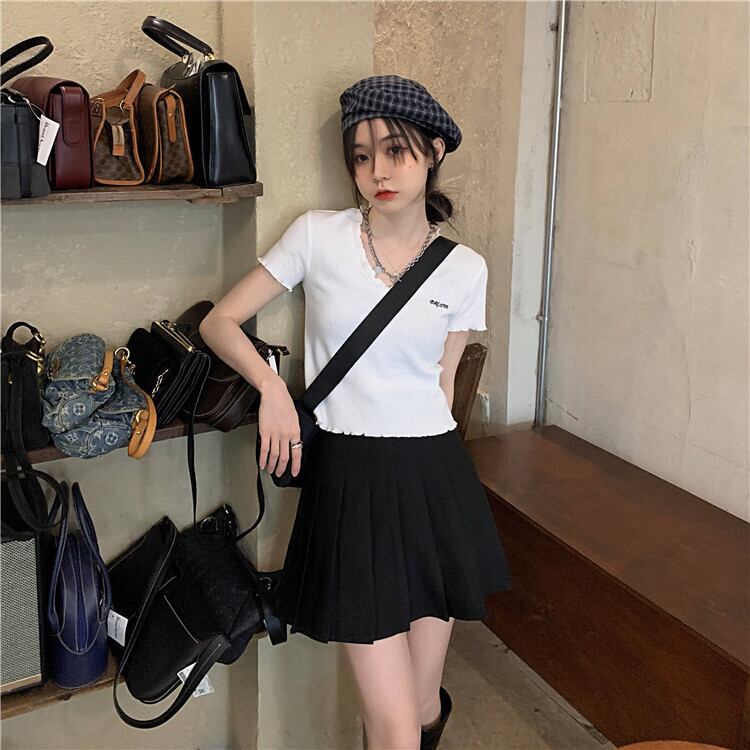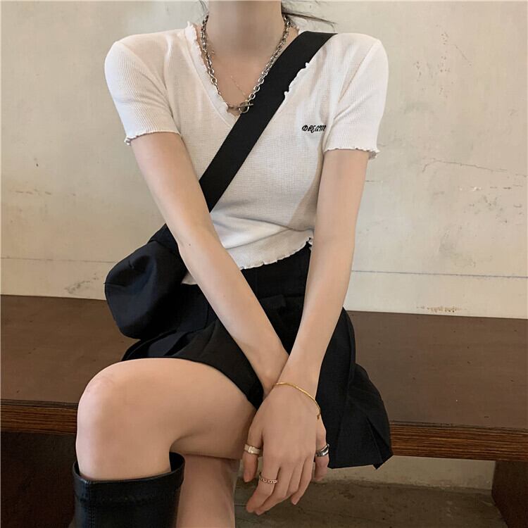 ホワイトTシャツ クロップドショートサマーVネックトップス 夏物 モンロー89482128453