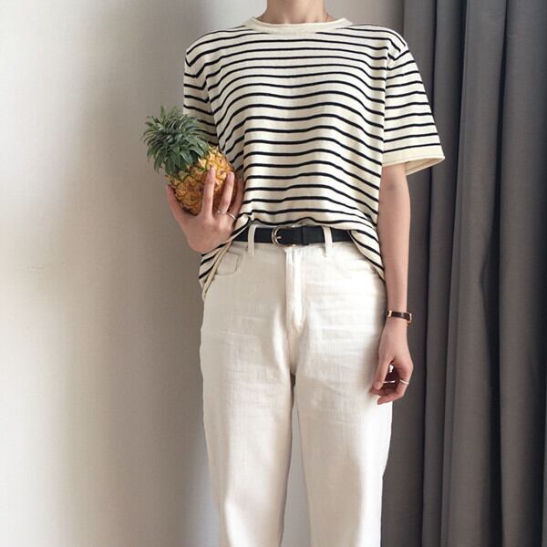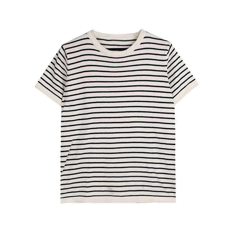 ストライプ薄手ニットTシャツ シャツ スプリングルーズトップス 春物 モンロー3671752