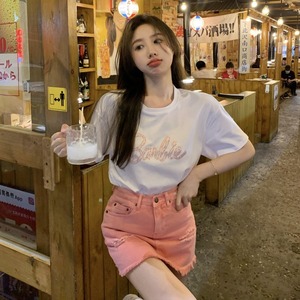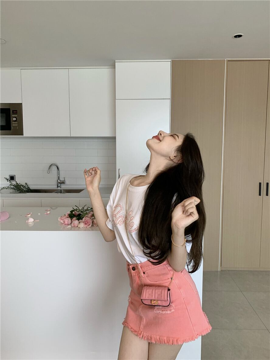 色:ホワイトTシャツ822,ピンクデニムスカート6024