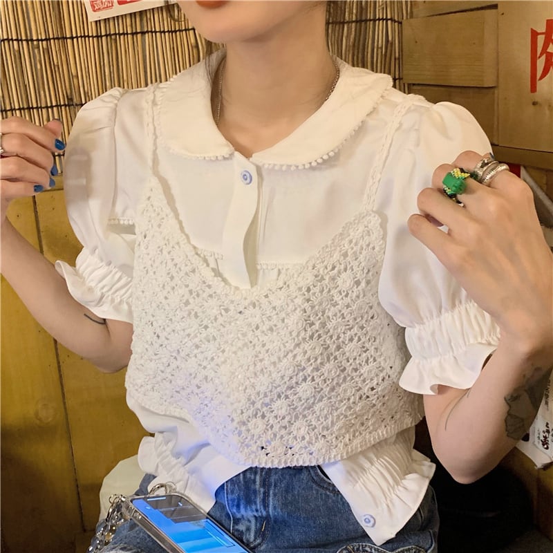 スリーブシャツ トップス サマールーズカラー 大人ガーリー スウィート キュート カジュアル 夏物 モンロー75901327086