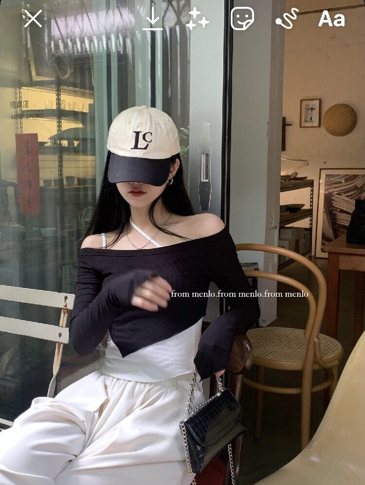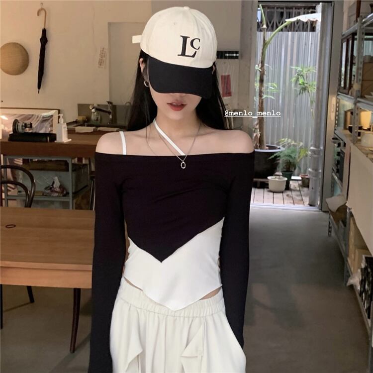 スタイルブラックTシャツ サマースリムトップス ロング 夏物 モンロー71055246694