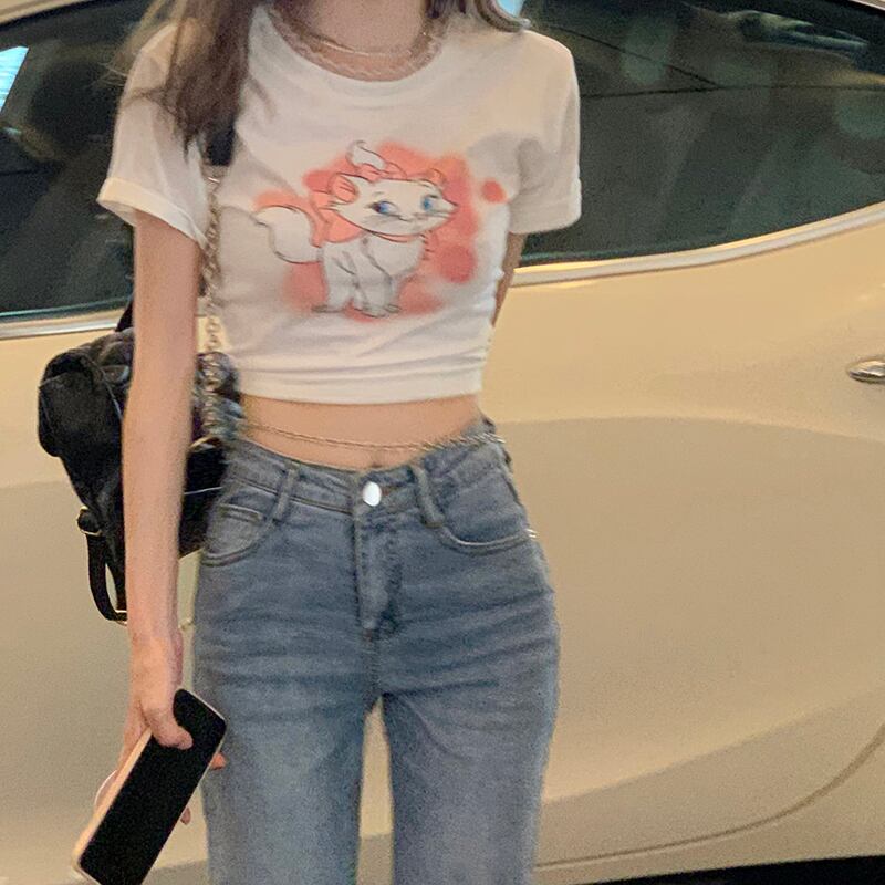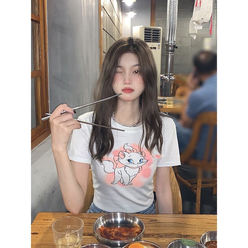 ショートTシャツ サマープリント柄スリムトップス 夏物 モンロー64408322367