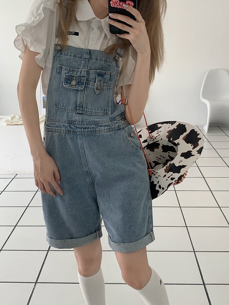 ロングショートジーンズ サマールーズ薄手パンツ オーバーオール 夏物 モンロー82033587614