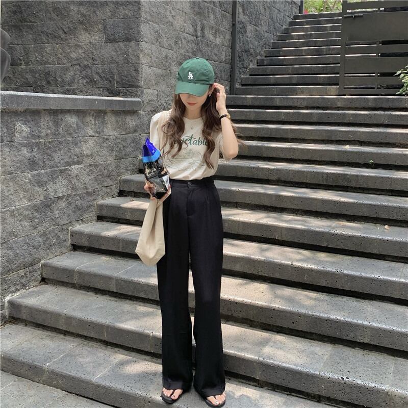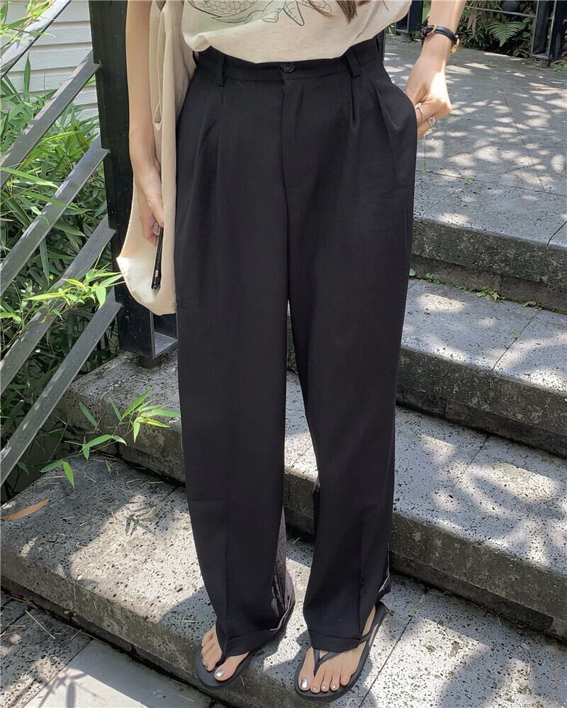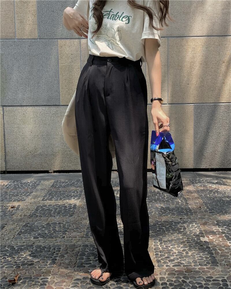 ブラックルーズカジュアルパンツ サマーハイウェストウェスト薄手 夏物 モンロー44486407522