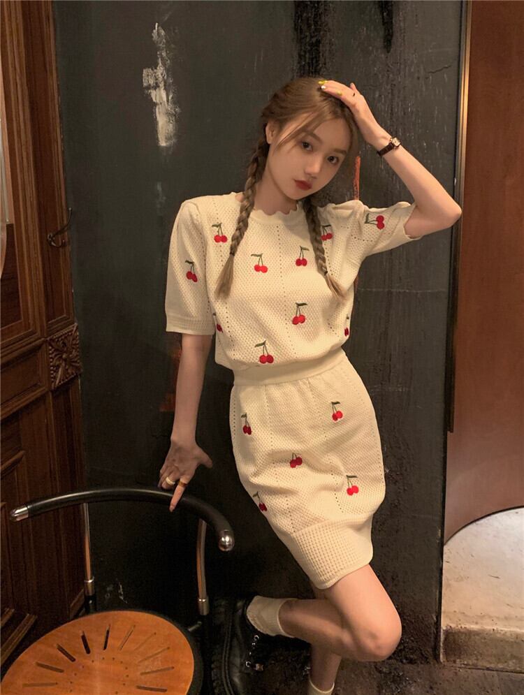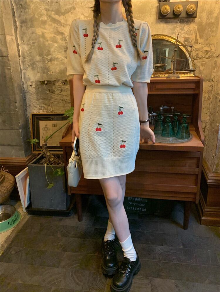 ヤーンスタイルサマーニットスカート セット ストリート 大人ガーリー スウィート キュート カジュアル 夏物 モンロー53763462184