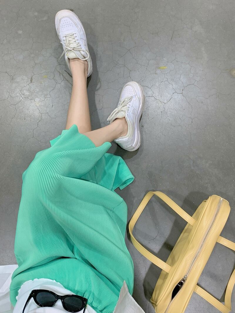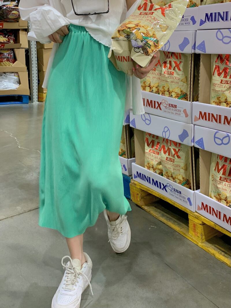 グリーンハイウェストウェストスカート ロングサマー薄手Aライン 夏物 モンロー28749252562