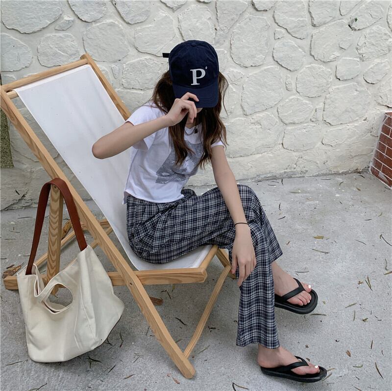色:チェック柄パンツ