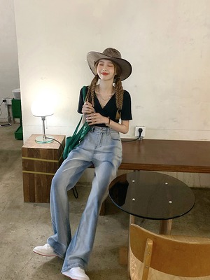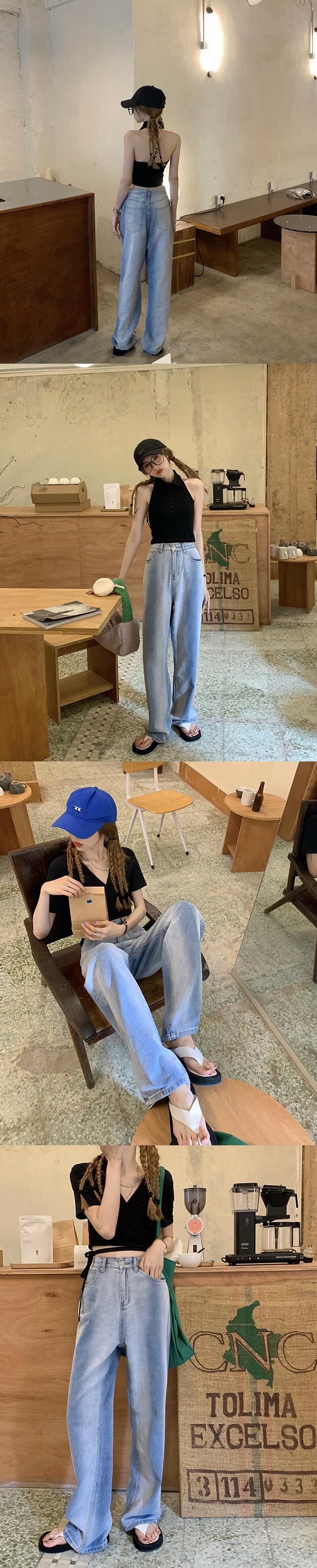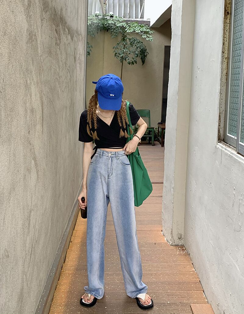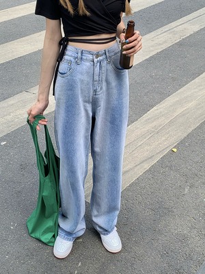 ジーンズ レディースサマー薄手ハイウェストウェストルーズワイドレッグパンツ 夏物 ワイドパンツ モンロー89403468913