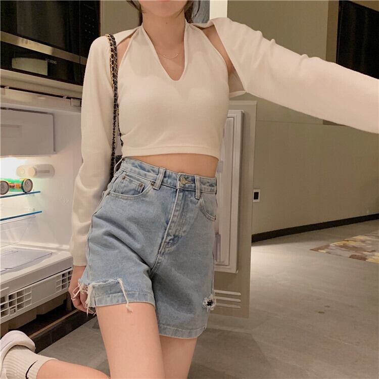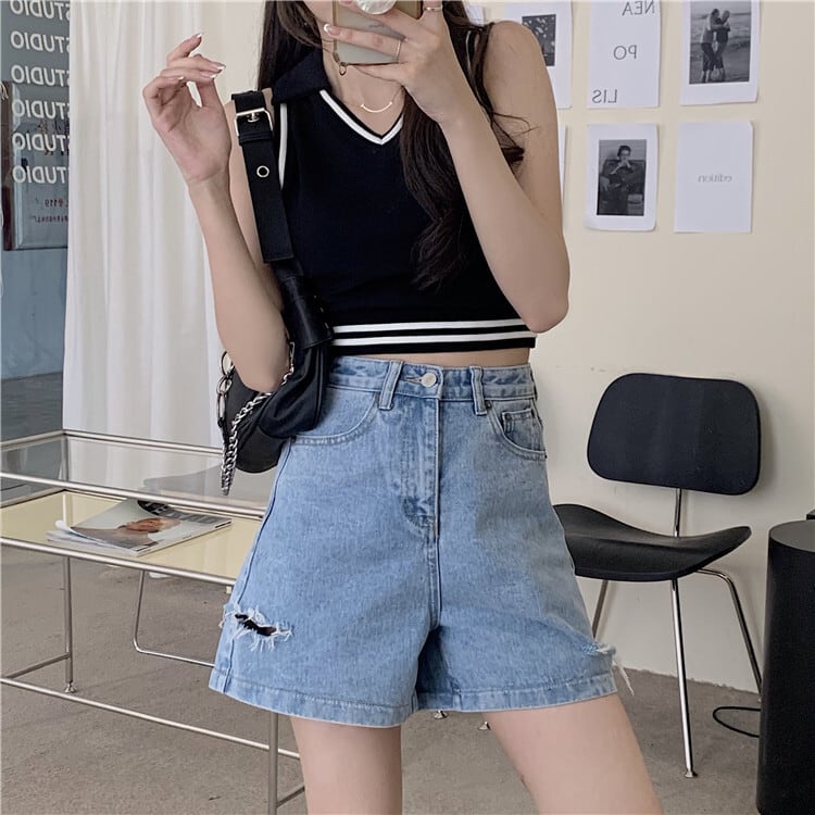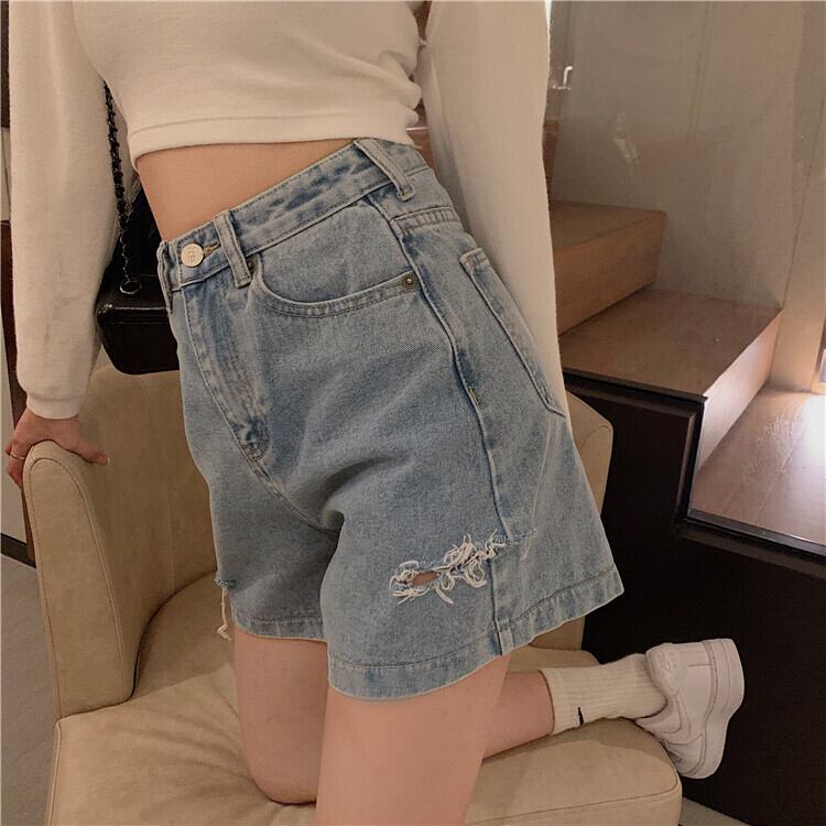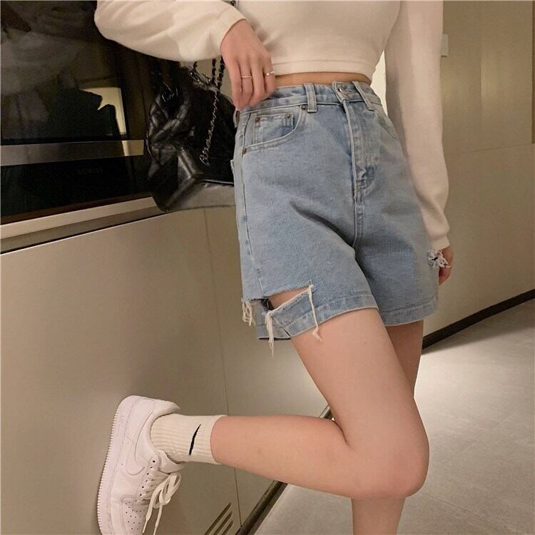 スタンダードハイウェストウェスト薄手Aラインショーツ サマージーンズ レトロ 夏物 ブルマー モンロー13439569501