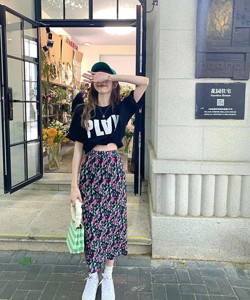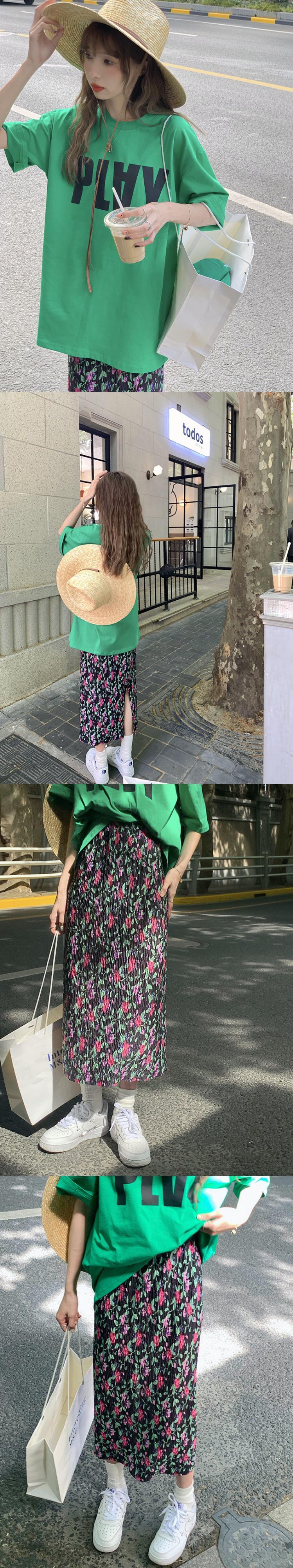 色:65019#ホワイトTシャツ,65019#ブラックTシャツ,65019#グリーンTシャツ,65020#フローラルスカート