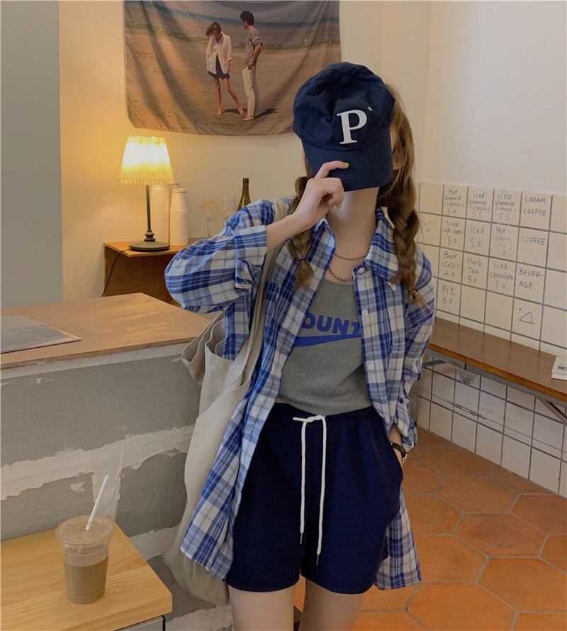 サマールーズ格子柄シャツ カジュアルショーツ ロング 夏物 ブルマー モンロー36882521038