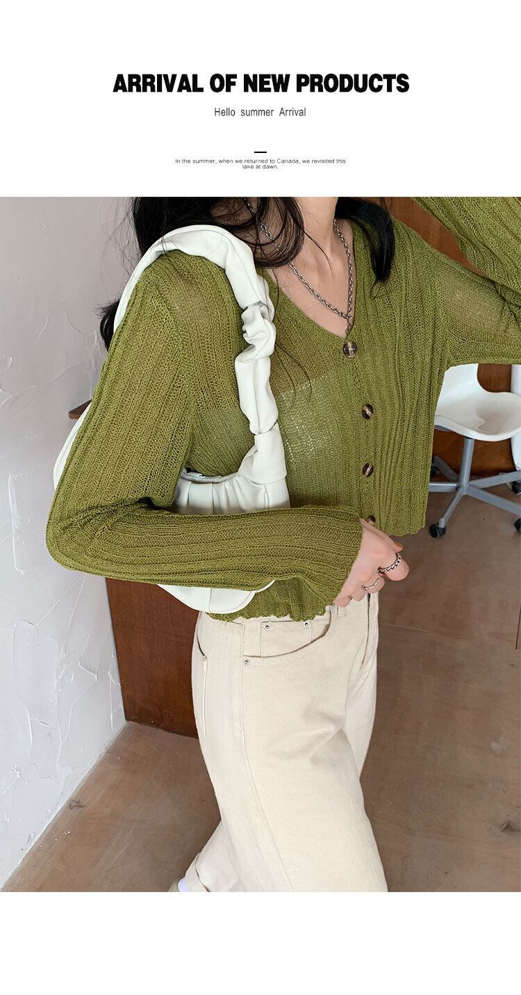 サマーニットVネックカーディガンジャケット 夏物 モンロー49877075304