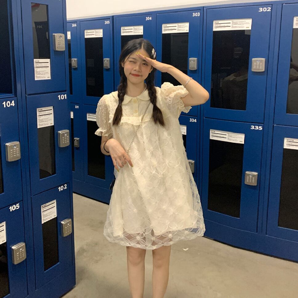 レースルーズドレス サマー薄手スカート 大人ガーリー スウィート キュート カジュアル 夏物 ステッチ モンロー48339741590