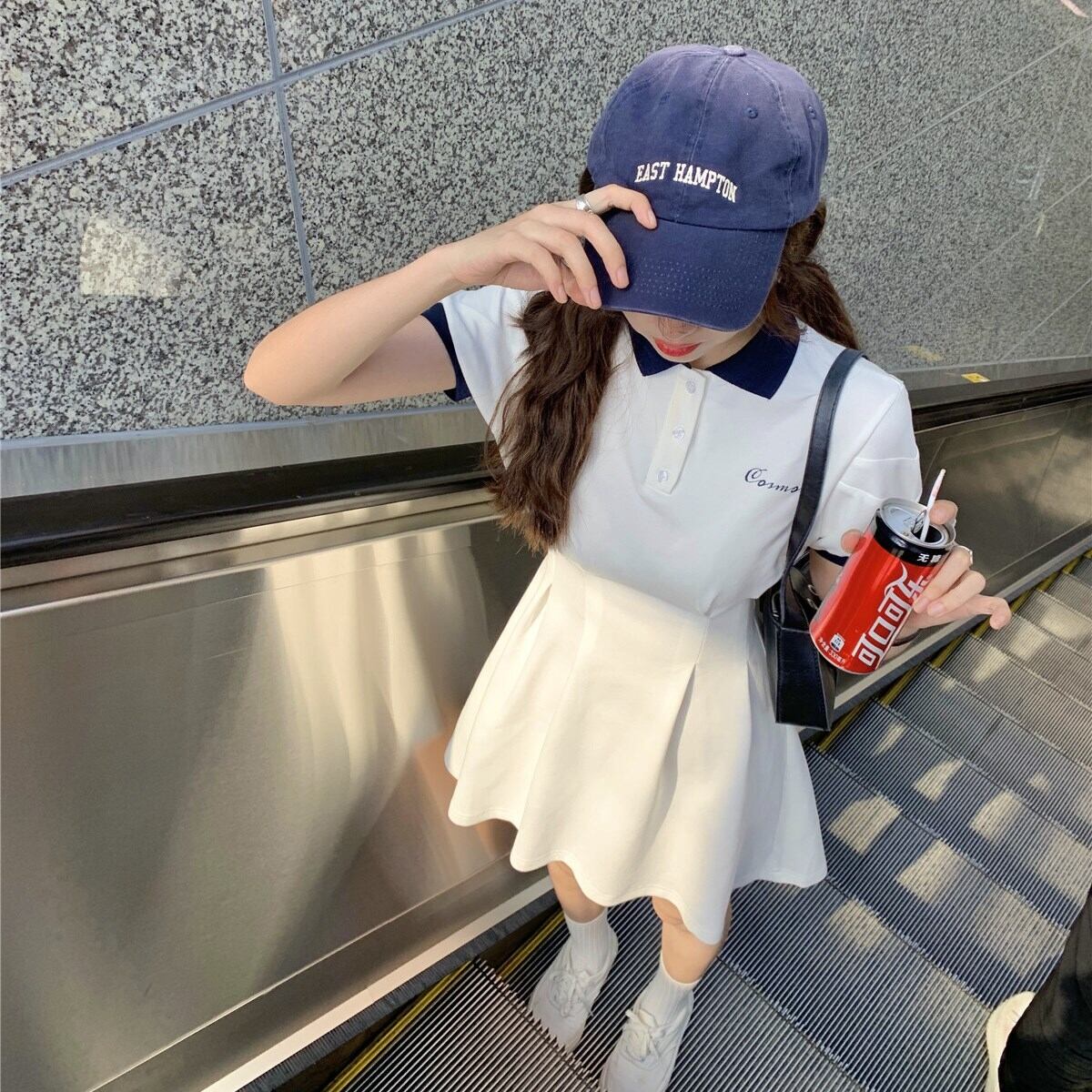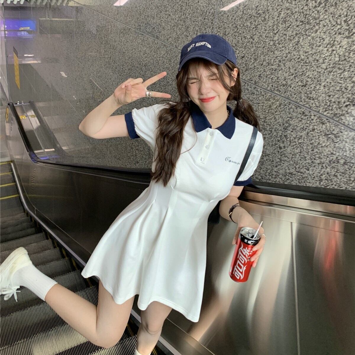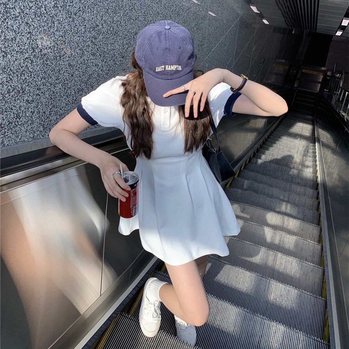 カジュアルスタイルウェストドレス サマーカラー半袖スリーブスカート ショート ハーフスリーブ 夏物 モンロー12958714197