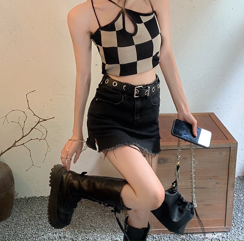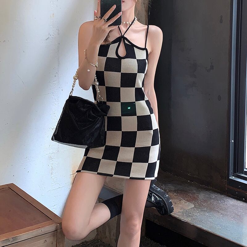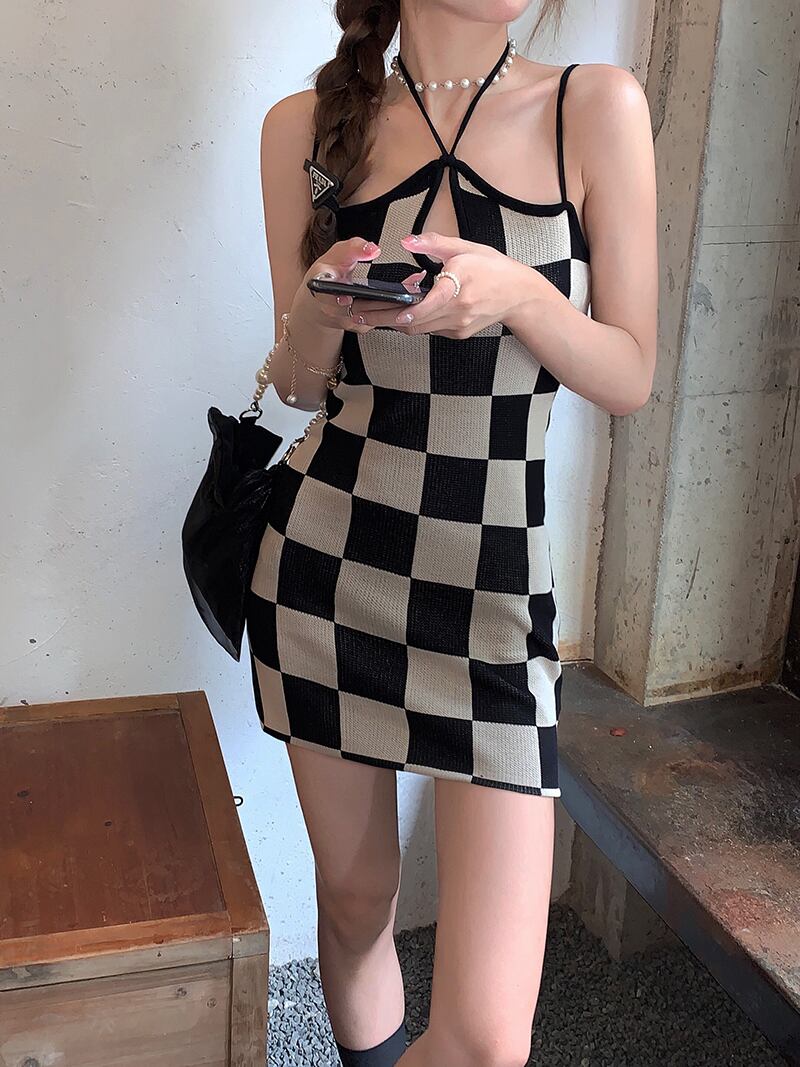 色:スリングニットチェック,ニットチェック柄のワンピース