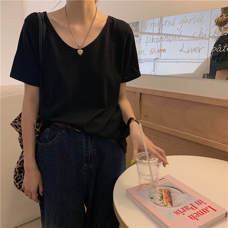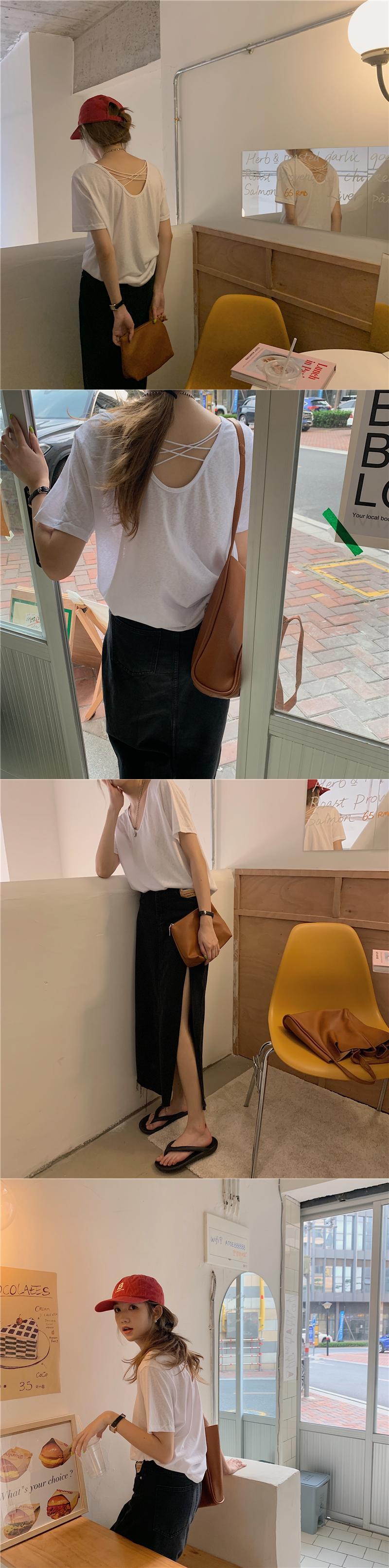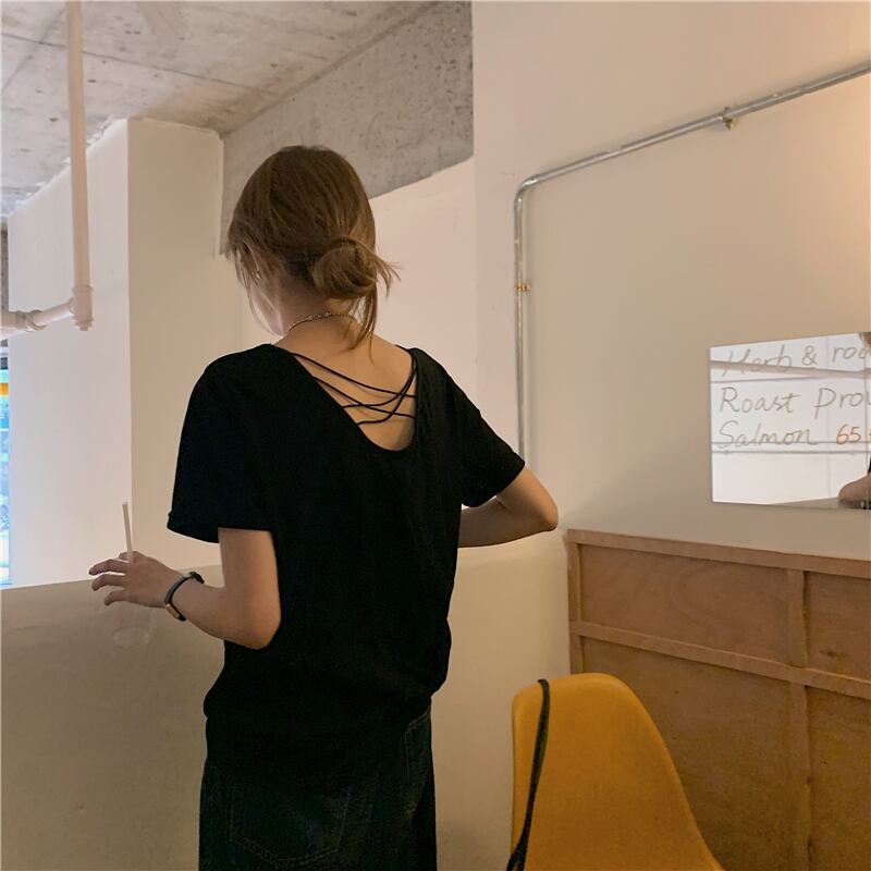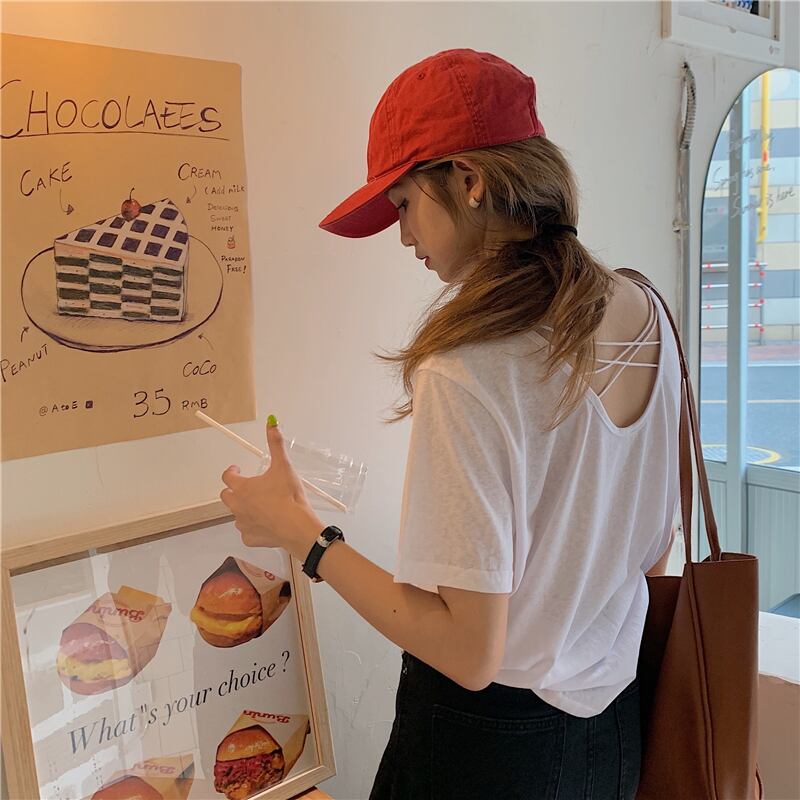 ホワイトルーズバックレスTシャツ 薄手サマートップス 夏物 モンロー69148307220