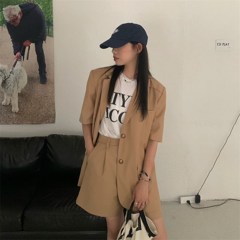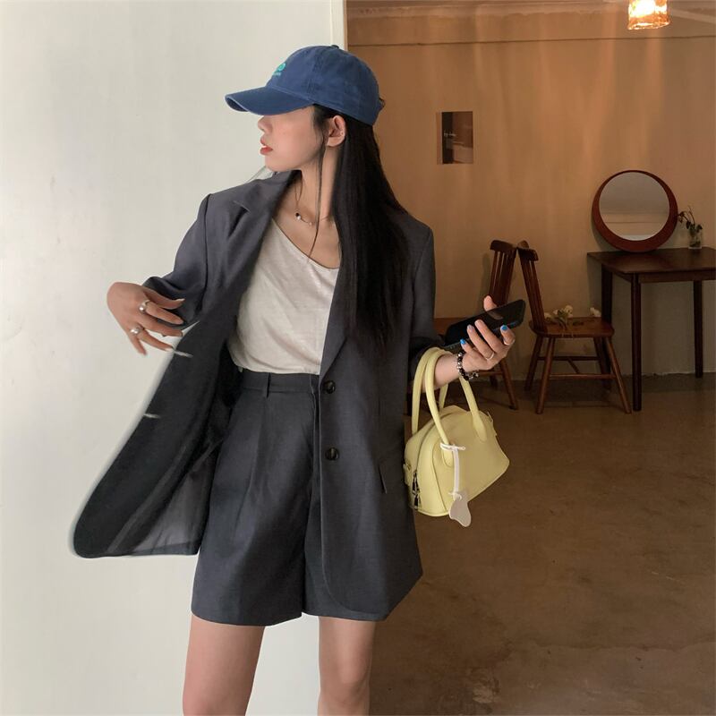 色:グレーブレザー,グレーのショートパンツ,カーキブレザー,カーキショートパンツ