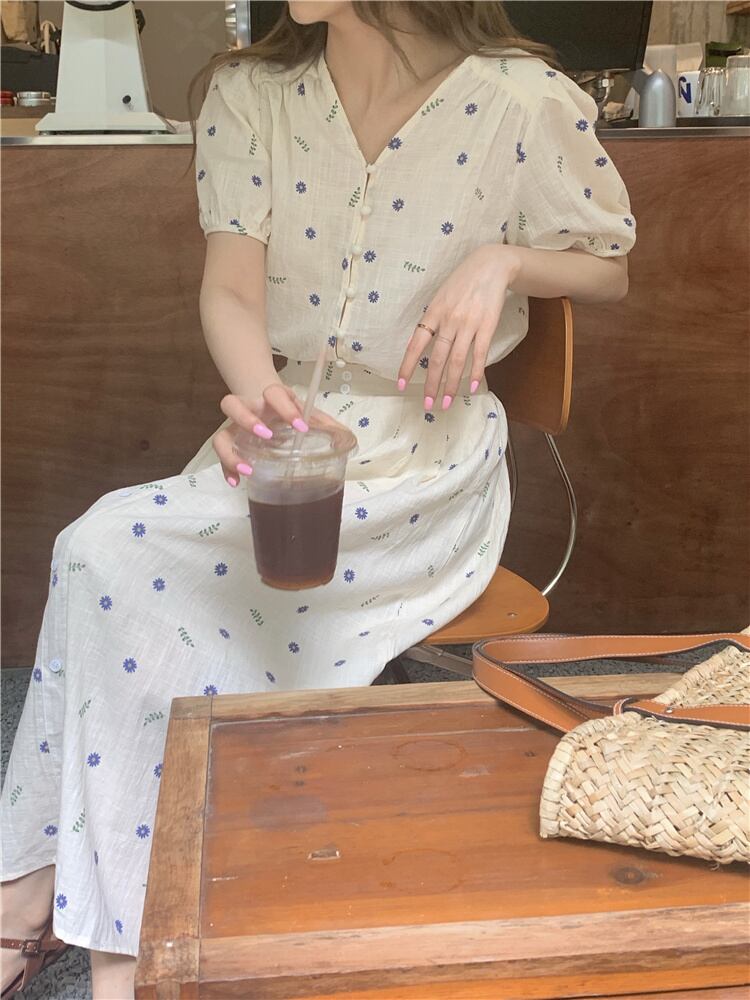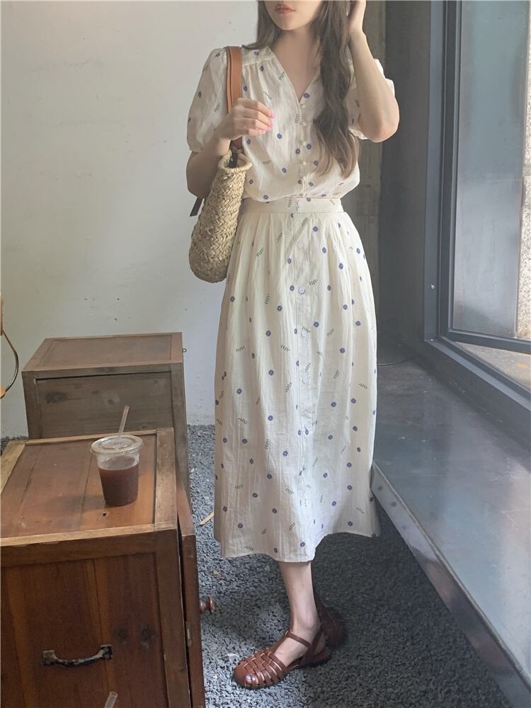 サマーFlowerデザイン トップス スカート セット レッド 刺繍 夏物 フラワーデザイン モンロー44132394626