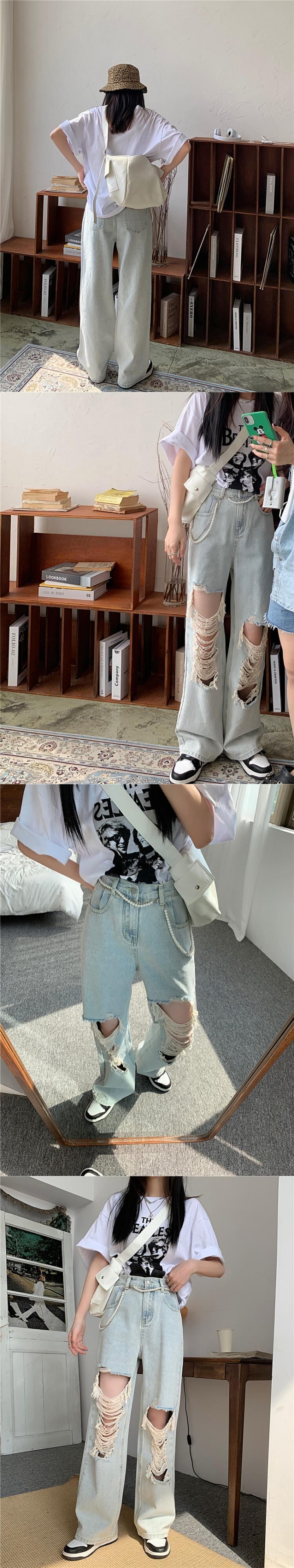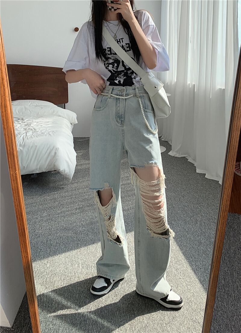 スタイルハイウェストウェストワイドレッグジーンズ サマールーズパンツ ストリート 夏物 ワイドパンツ モンロー16898484752