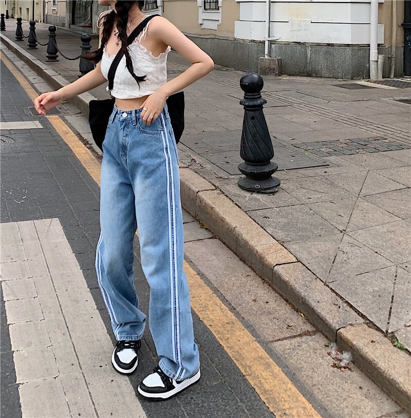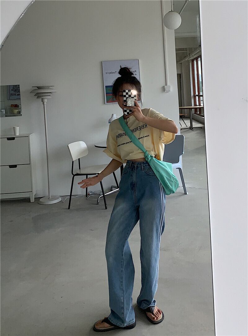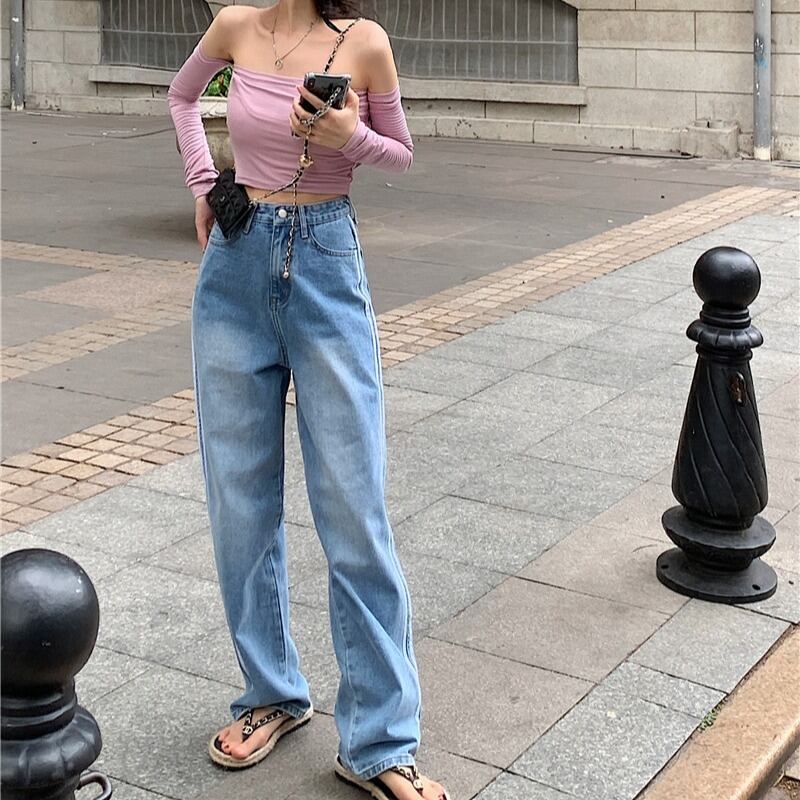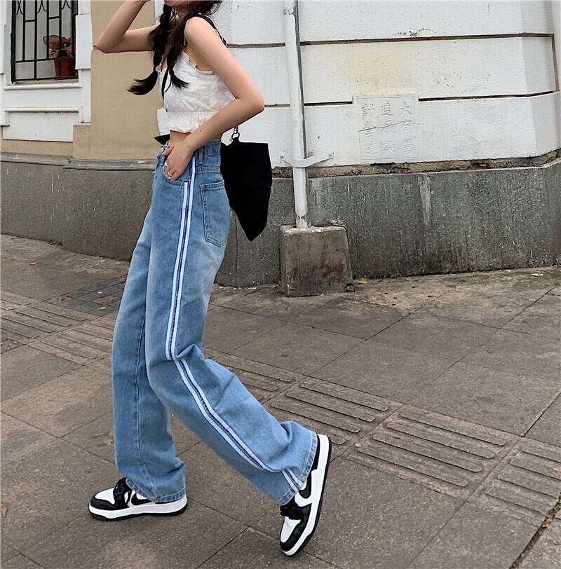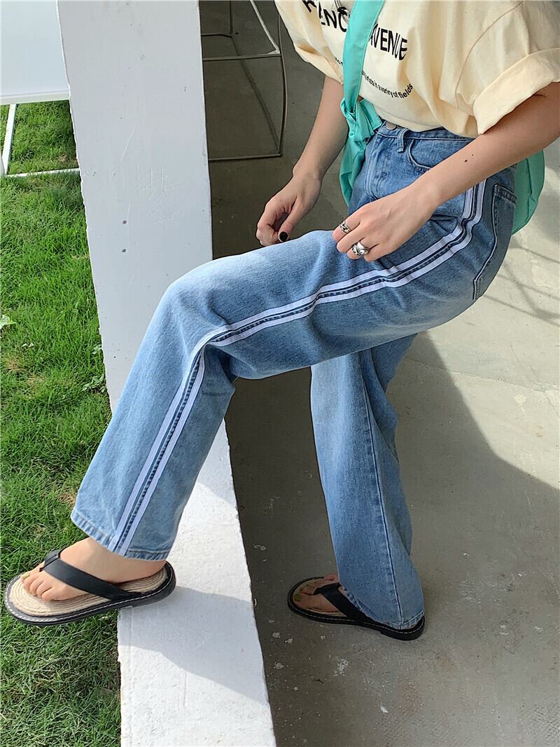 薄手ルーズサマージーンズ ハイウェストスリムパンツ レッド 夏物 モンロー80077538941