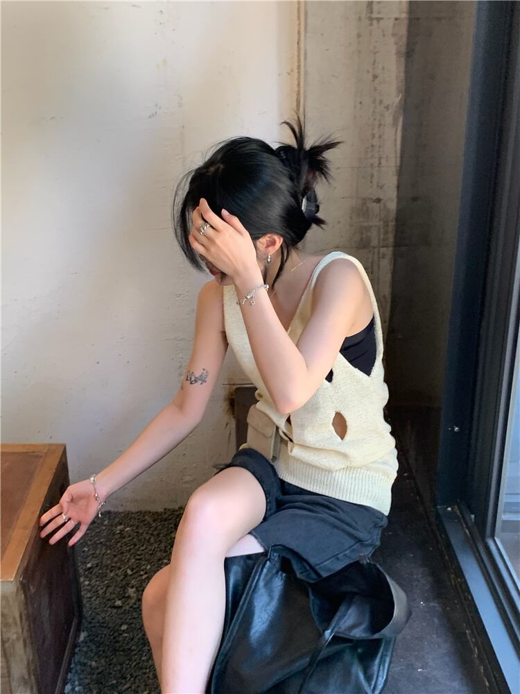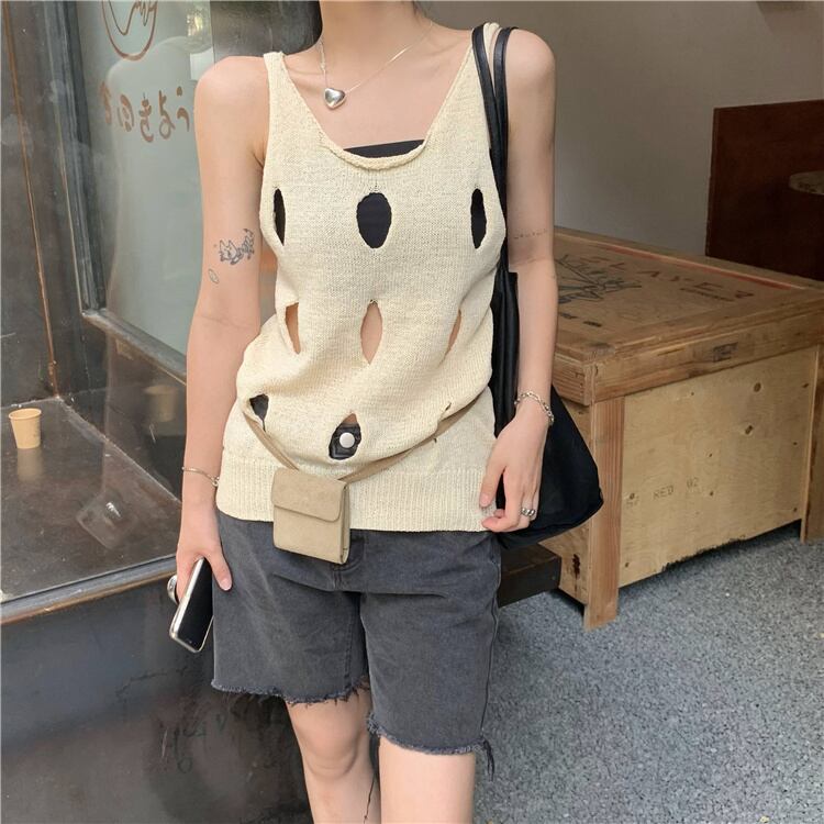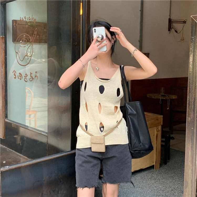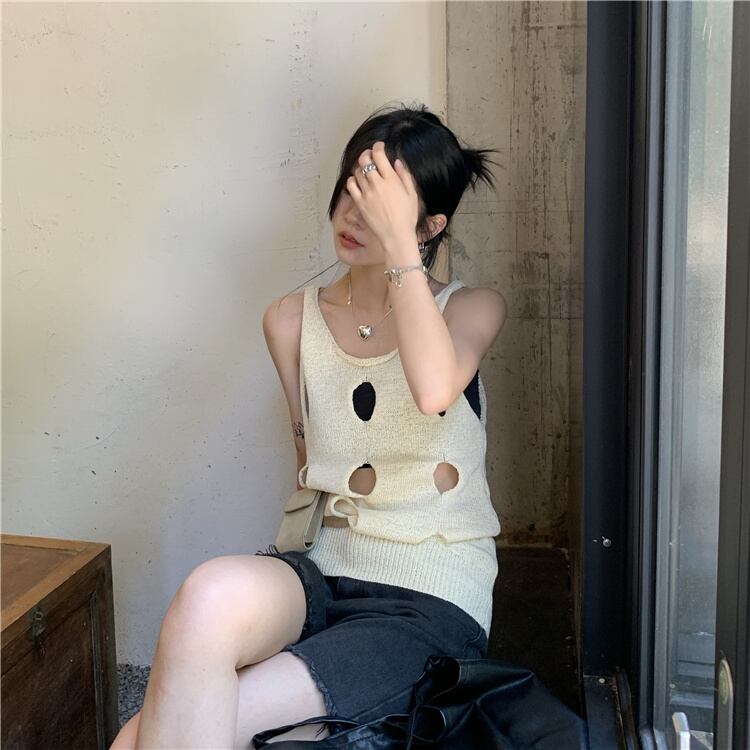 ブラックニットサマーブラウス 夏物 モンロー31330927683