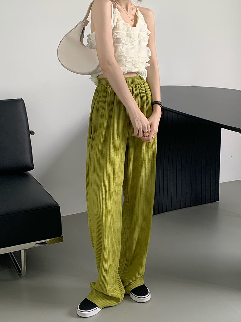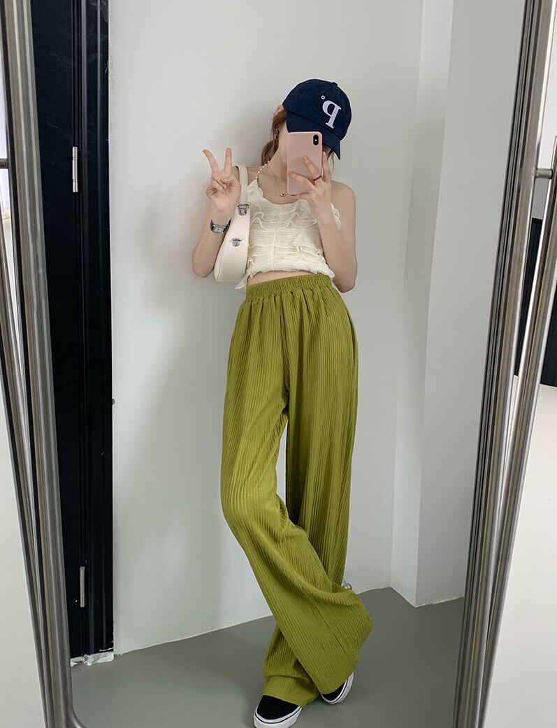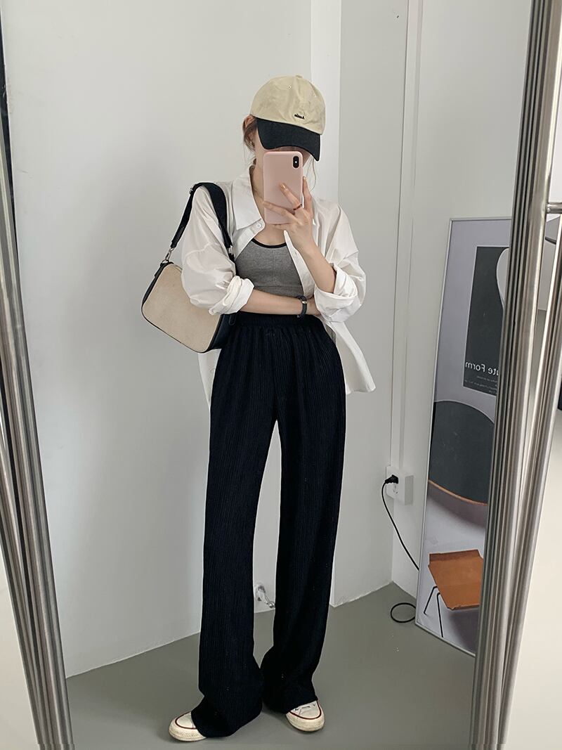 ブラックストレッチハイウェストウェストカジュアルパンツ サマー薄手ルーズ エラスティック 伸縮 夏物 モンロー64506888757