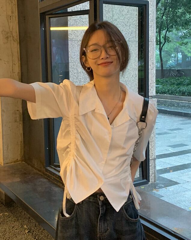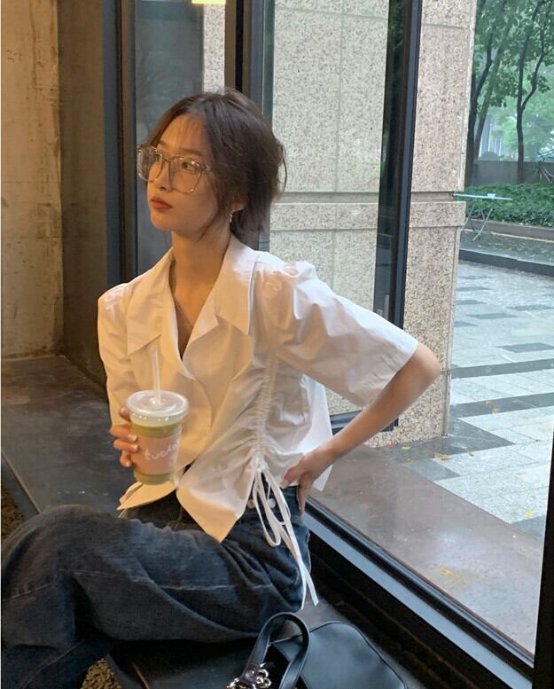 ホワイトショートシャツ 薄手サマートップス レース 夏物 レースアップ モンロー88881980995