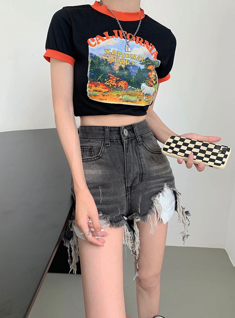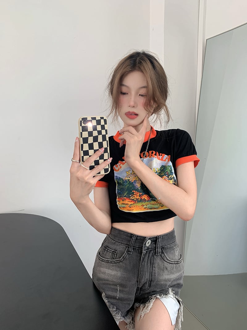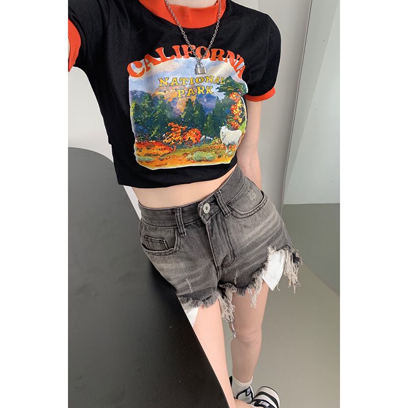 ショートスリムTシャツ サマークロップトップ トップス 大人ガーリー スウィート キュート カジュアル 夏物 モンロー77897466788