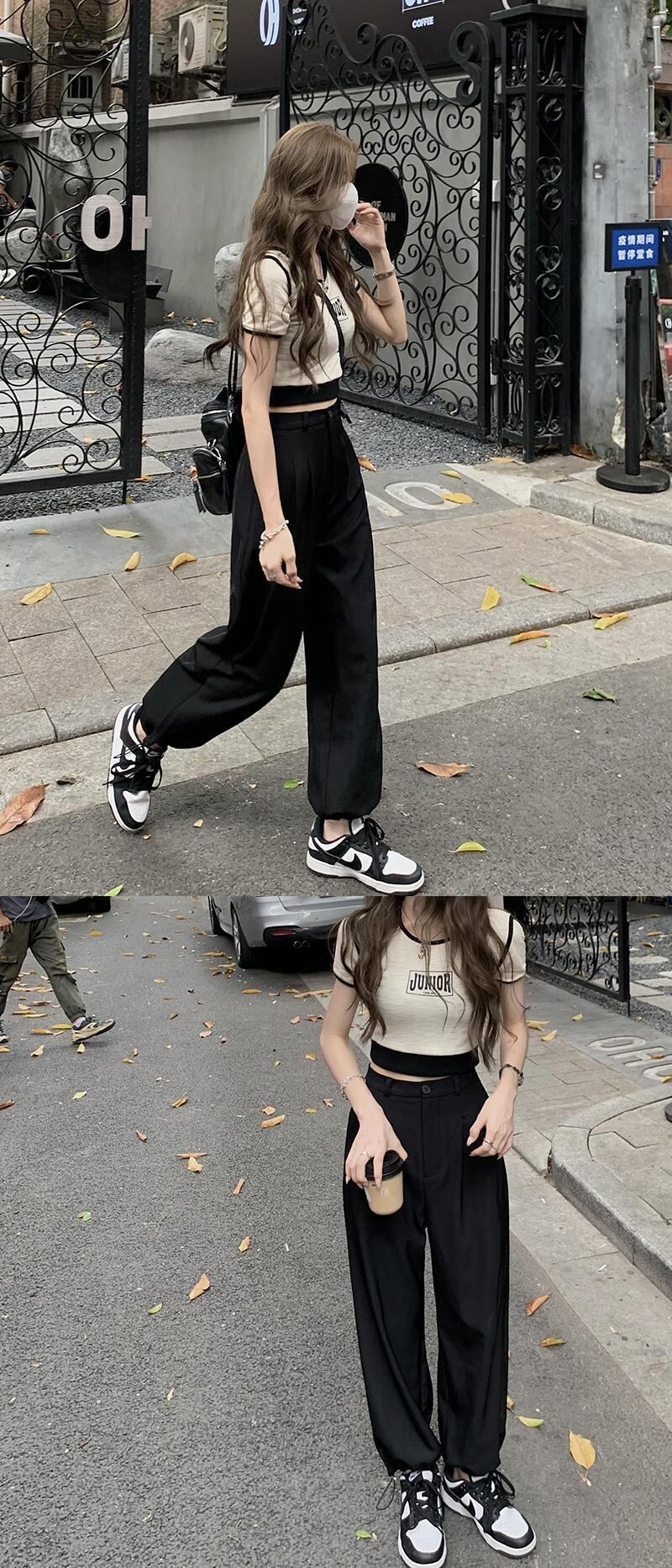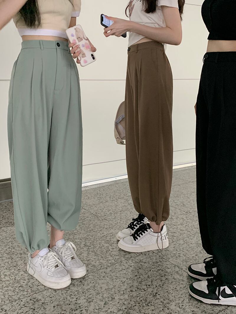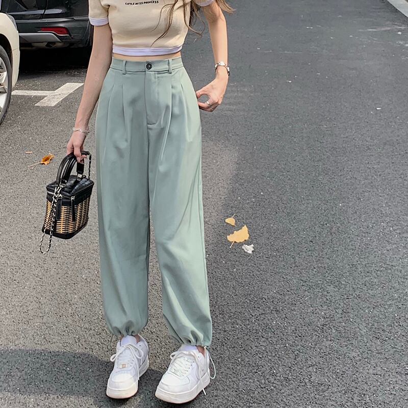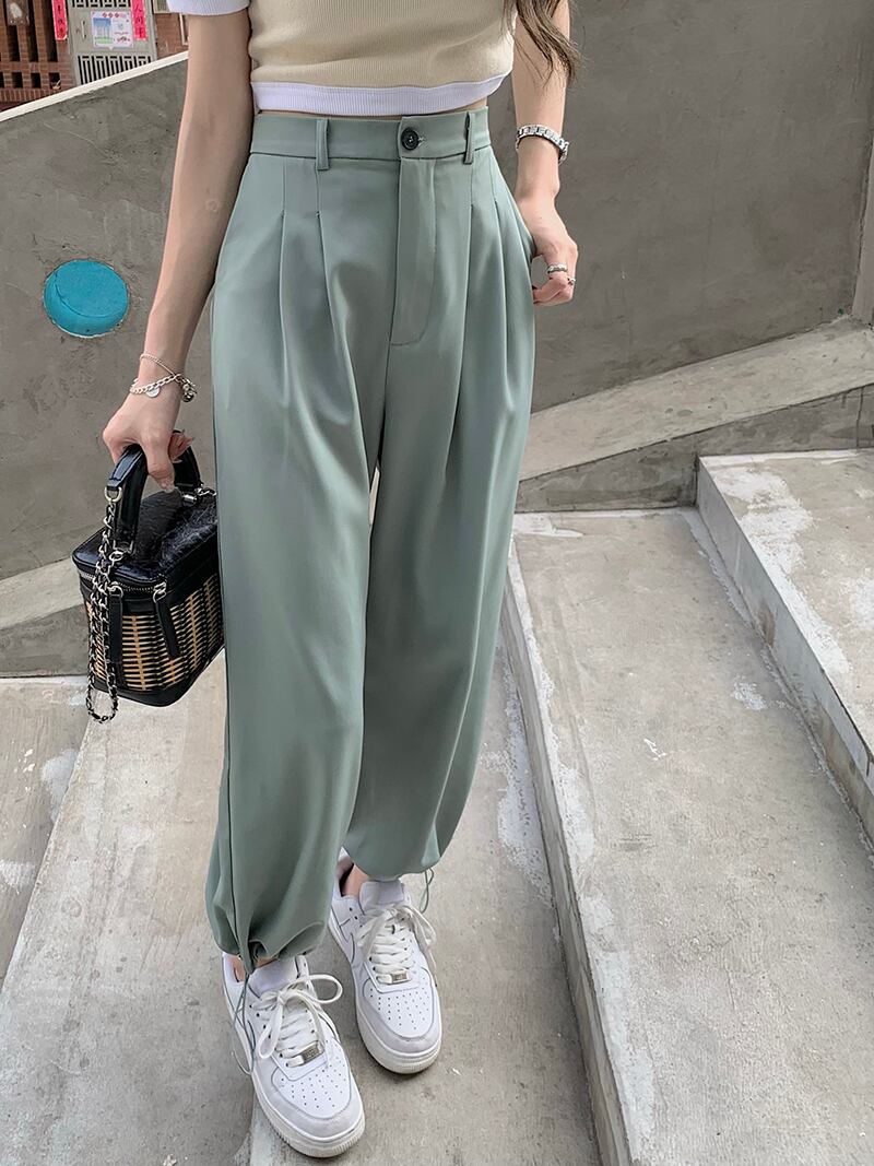 ハイウェストウェストカジュアルグリーンパンツ サマー薄手ルーズ 夏物 モンロー36938484502