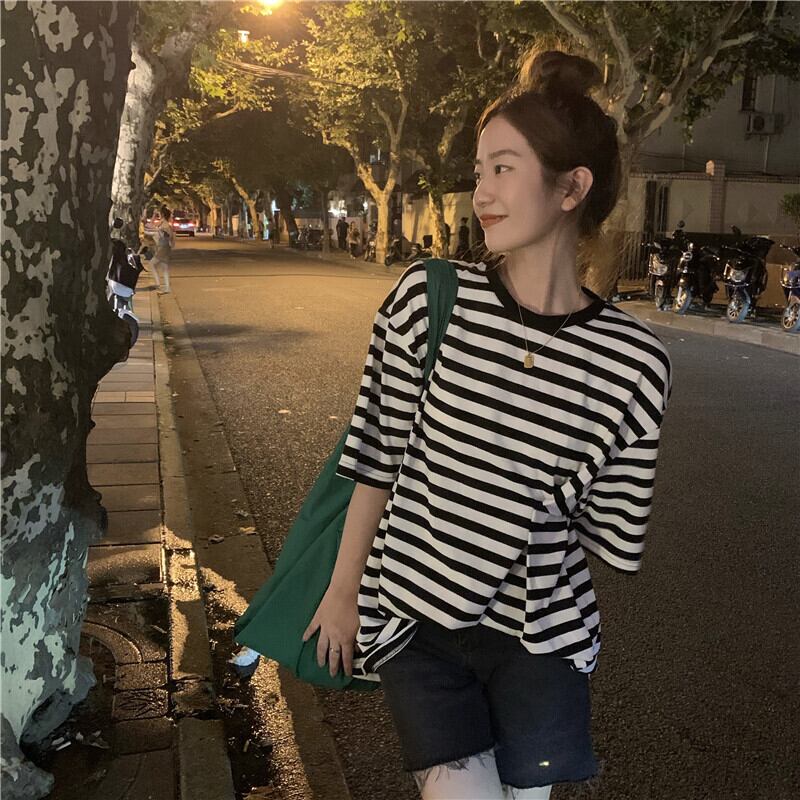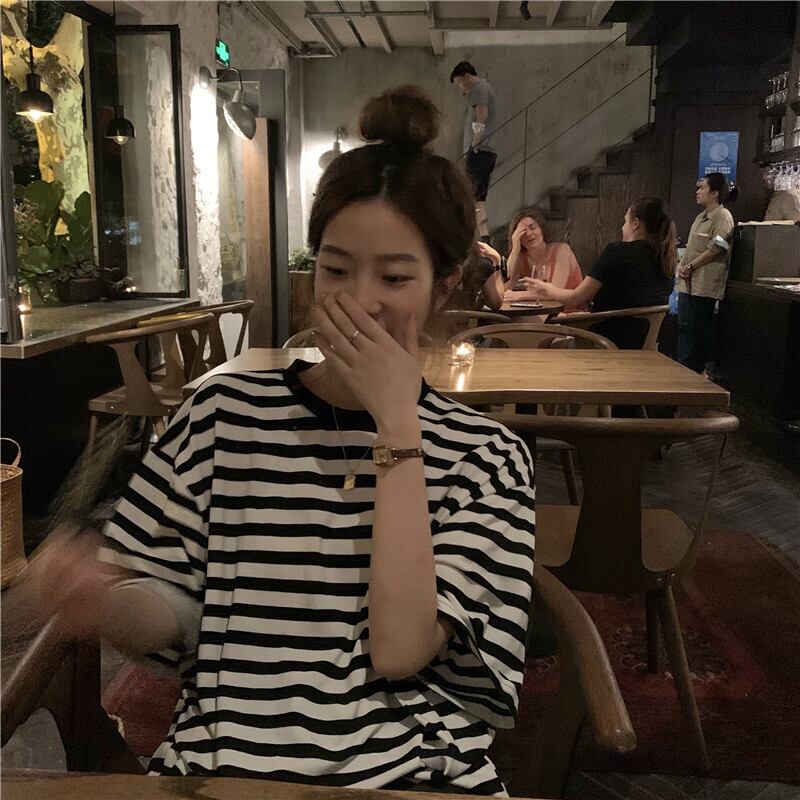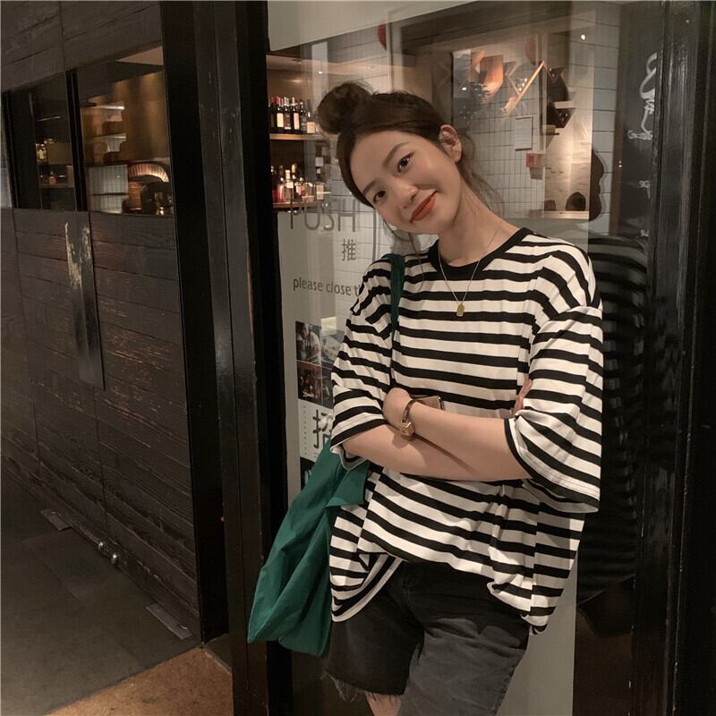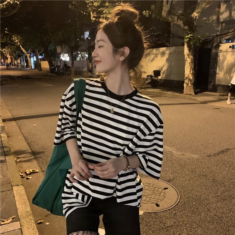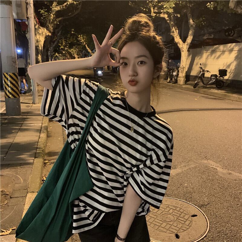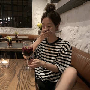 ルーズ薄手Tシャツ サマーストライプトップス 夏物 モンロー10753269152