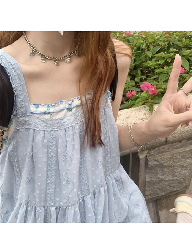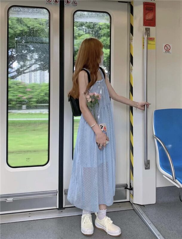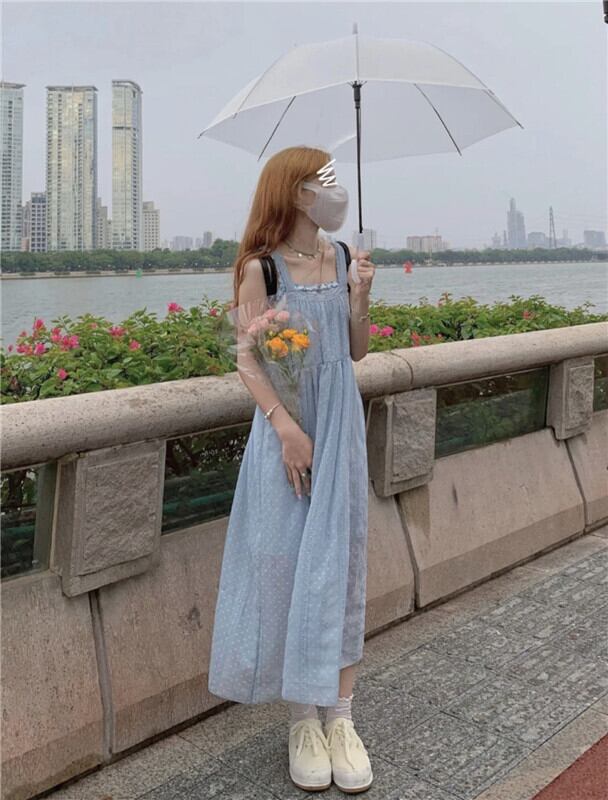 ブルードレス サマースタイルカラーロングスカート 大人ガーリー スウィート キュート カジュアル 夏物 スクウェア モンロー83773644880