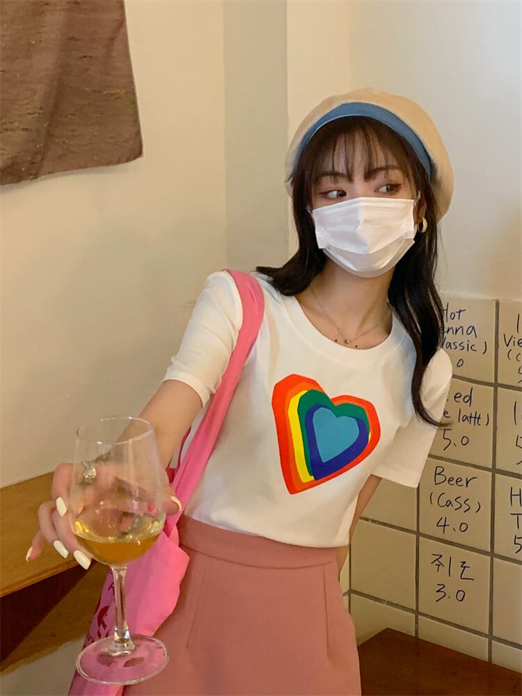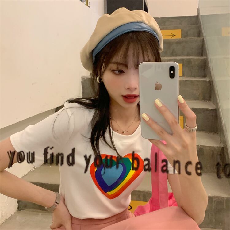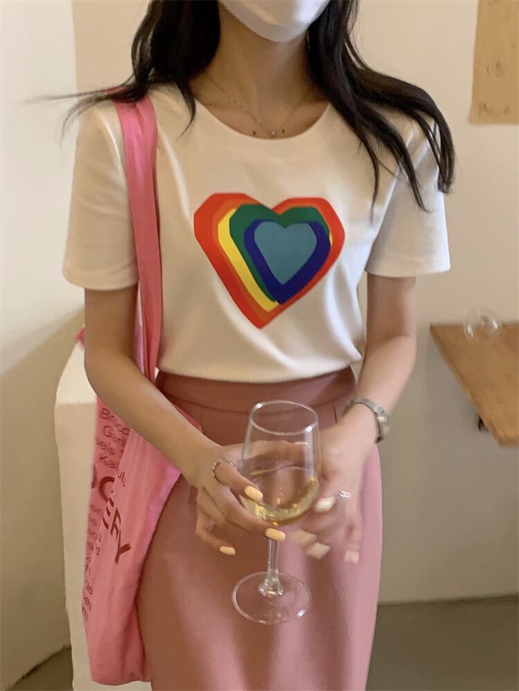 ショートプリントTシャツ サマーフィットスリムカジュアルトップス 夏物 モンロー95868982443