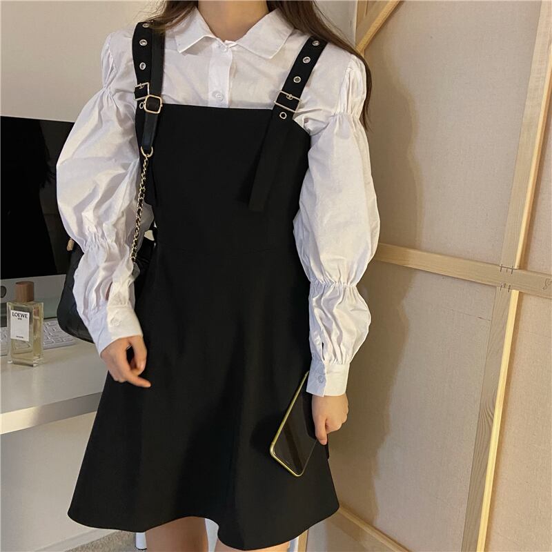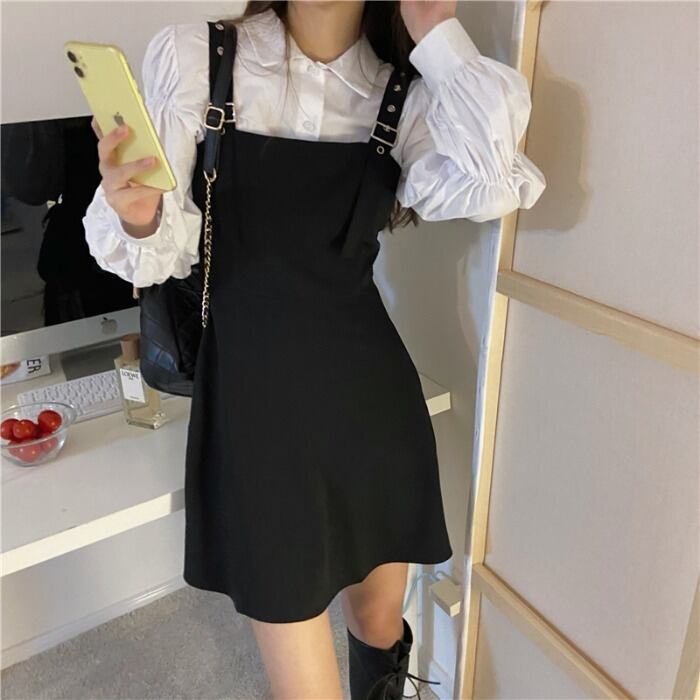 色:白いシャツ8105#内側,ブラックサスペンダースカート