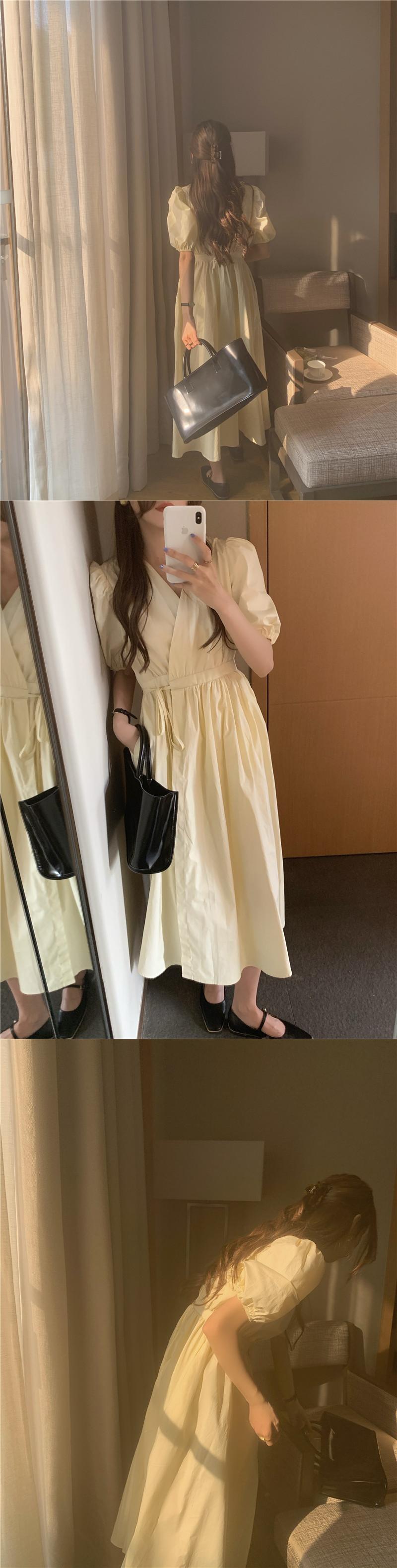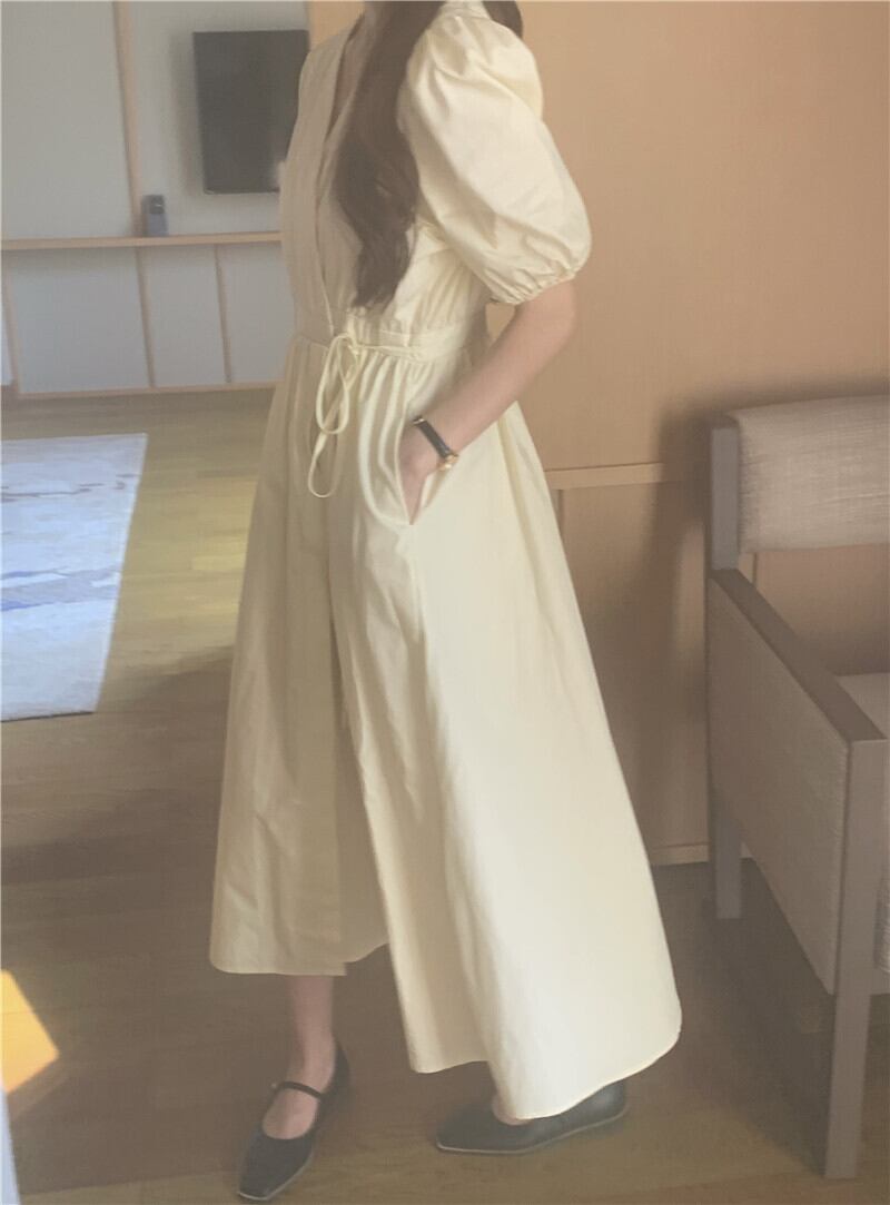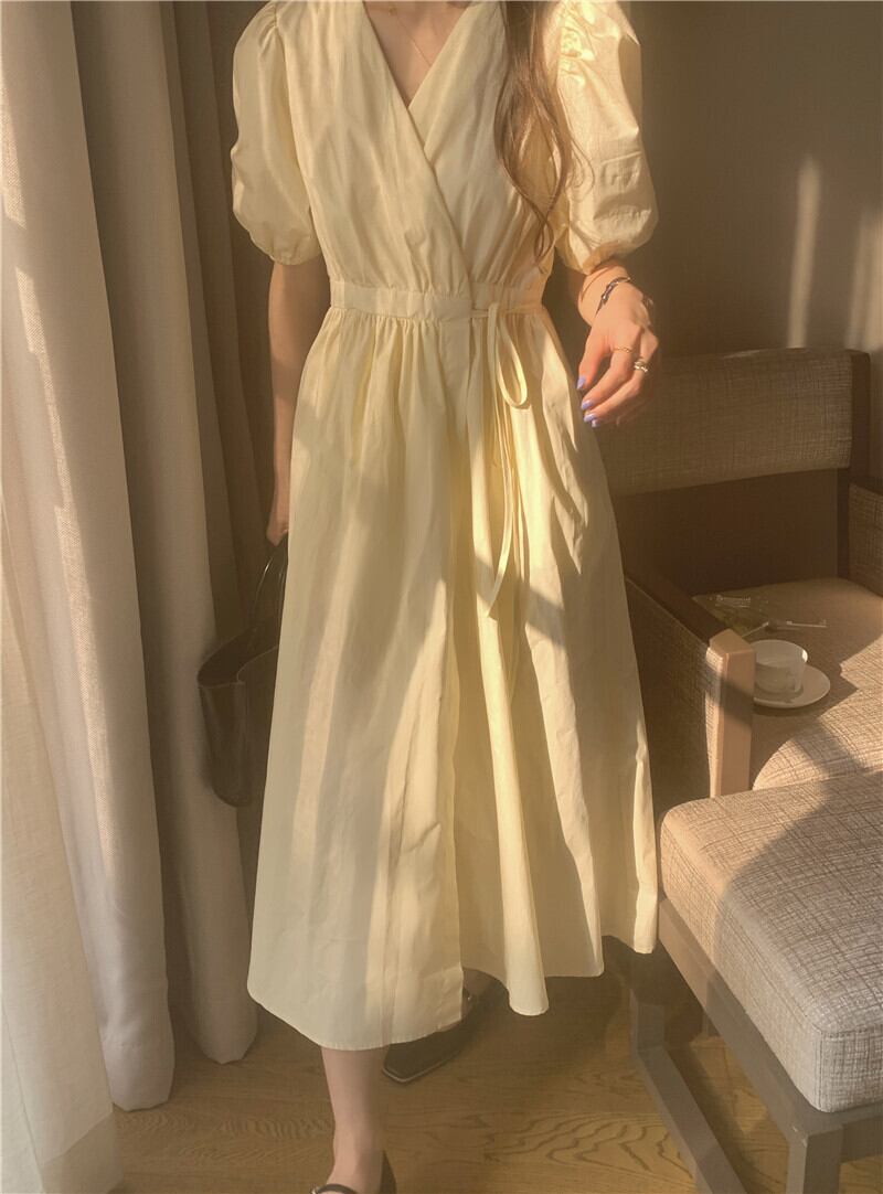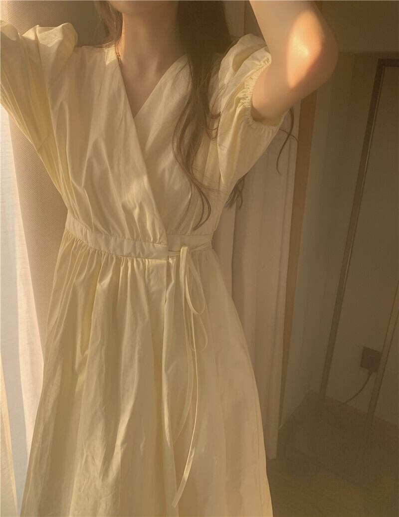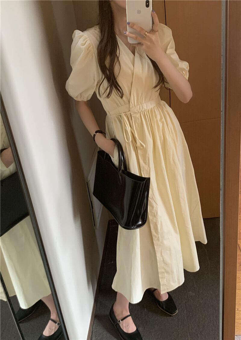 スタイルVネックスリーブドレス 薄手Aラインスカート サマーウェストロング 夏物 モンロー18782359376