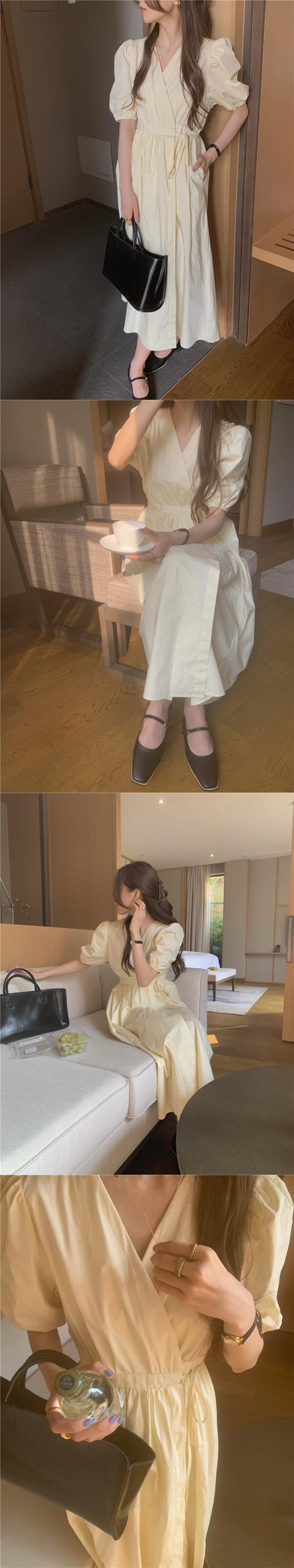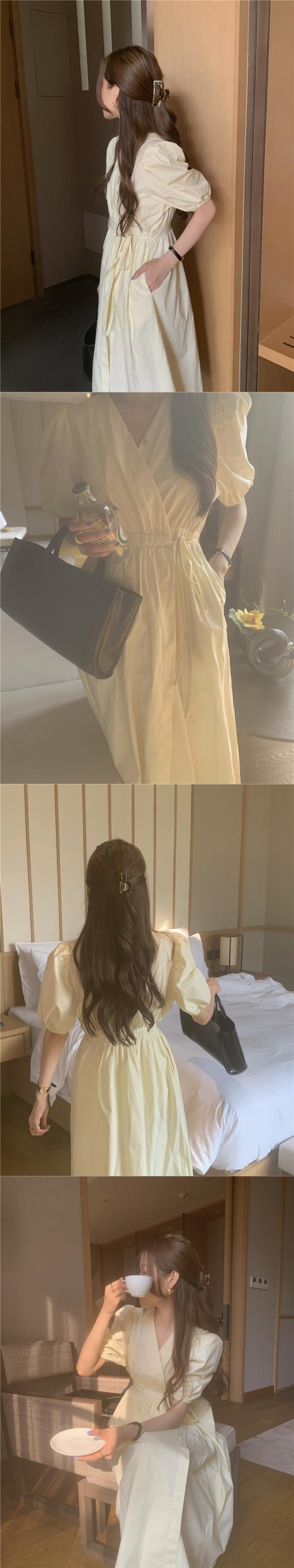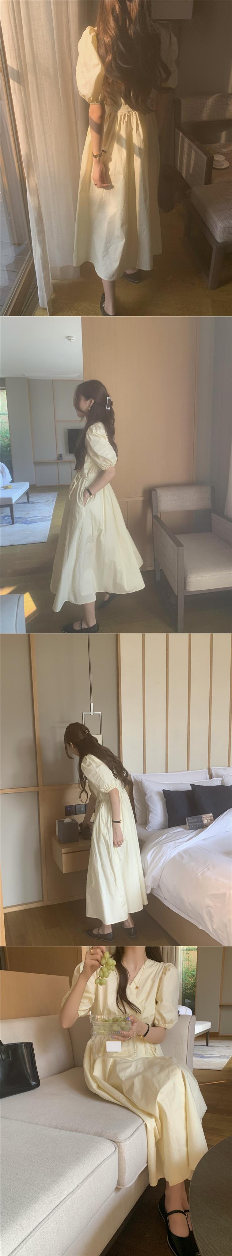 スタイルVネックスリーブドレス 薄手Aラインスカート サマーウェストロング 夏物 モンロー18782359376