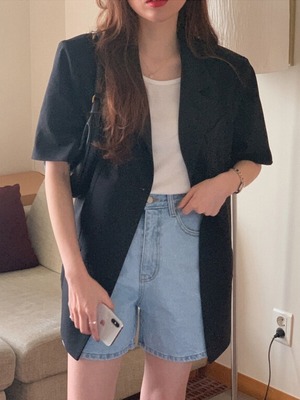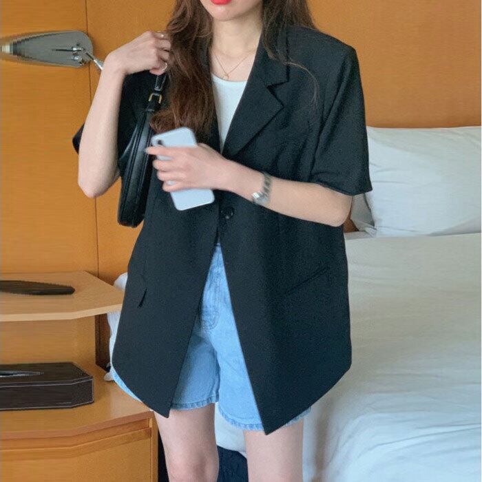 ブラックジャケット サマー薄手カジュアルスタイルトップス 夏物 モンロー94991785767