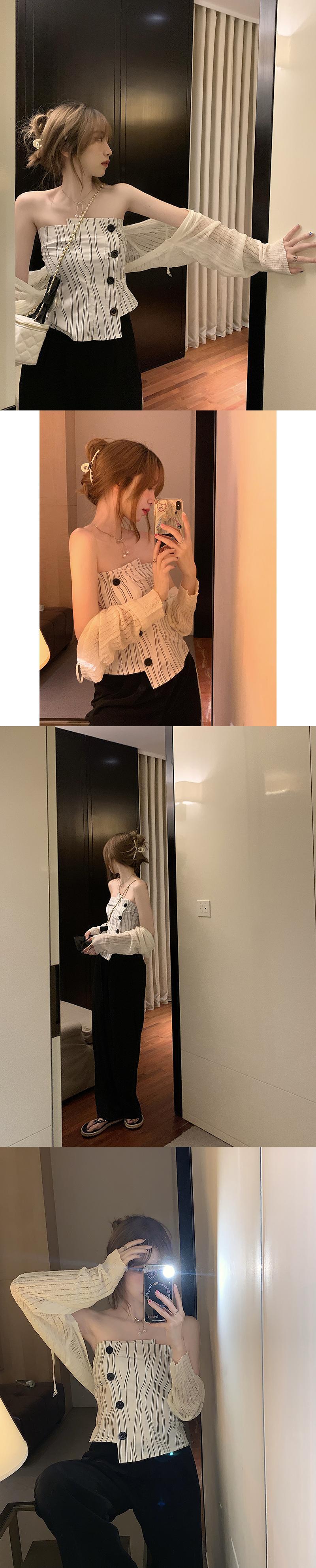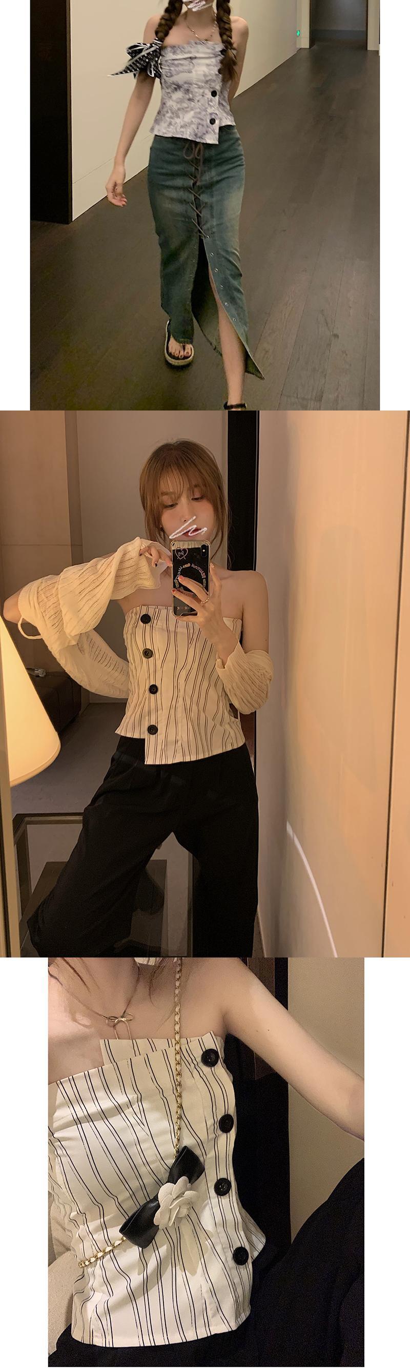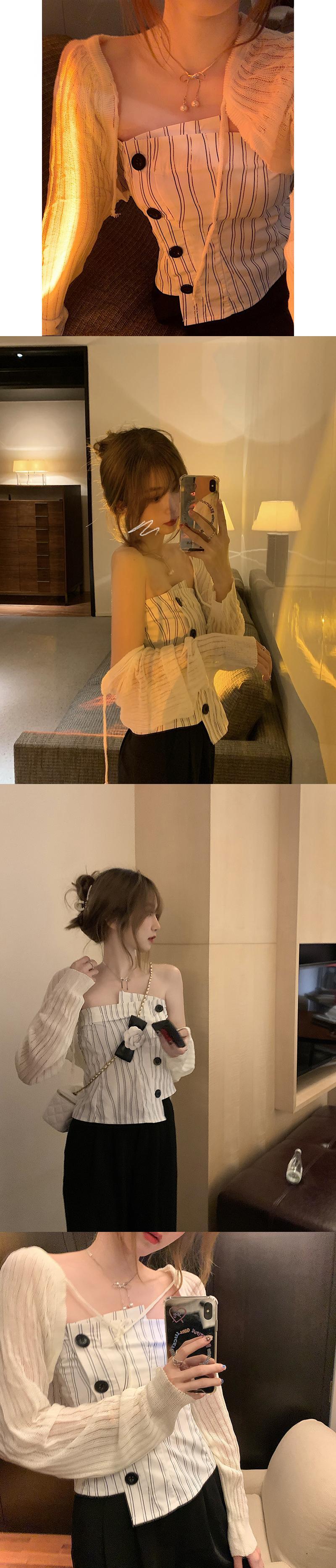 色:水墨画チューブトップ11663,ストライプチューブトップ11663,ニットカーディガン28036