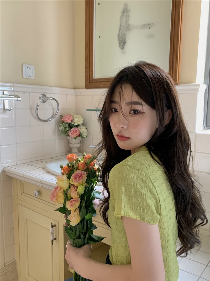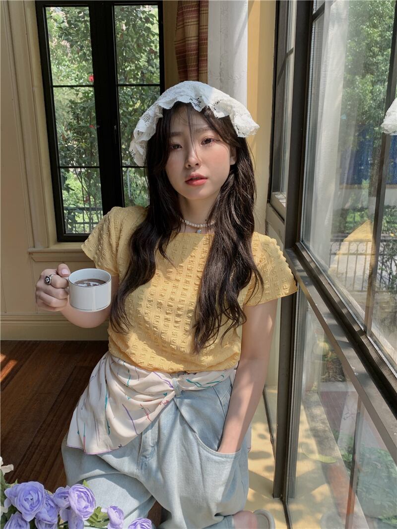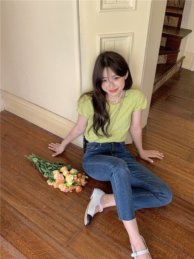 スリムショートTシャツ サマーハイウェストウェストトップス 夏物 モンロー92303340915
