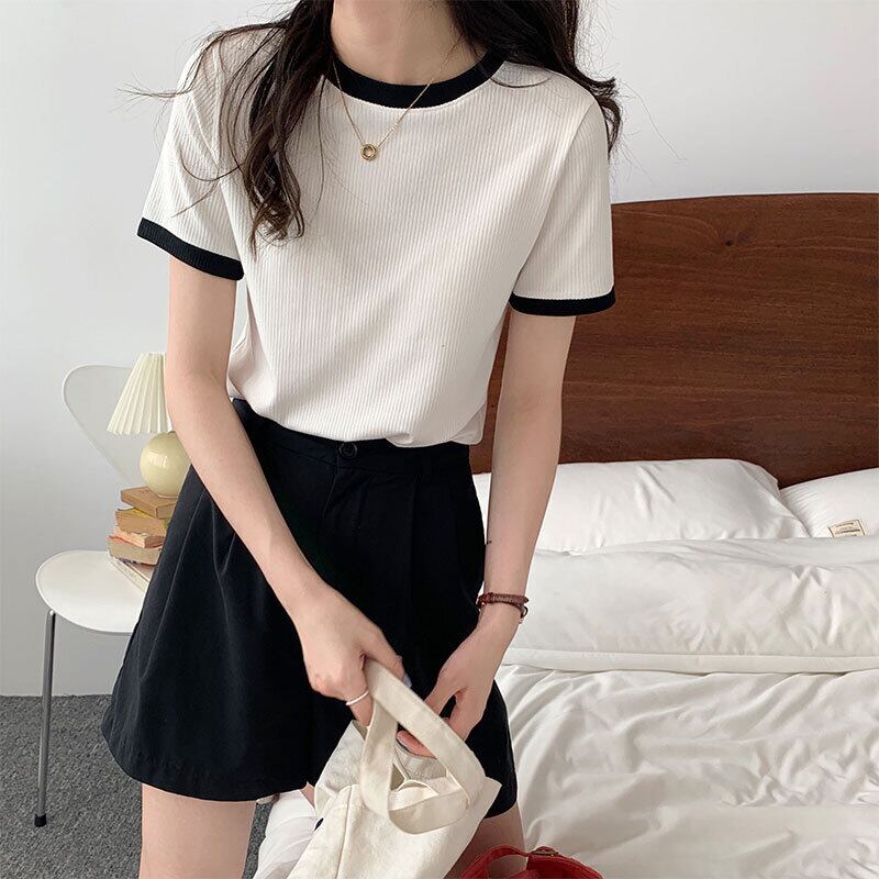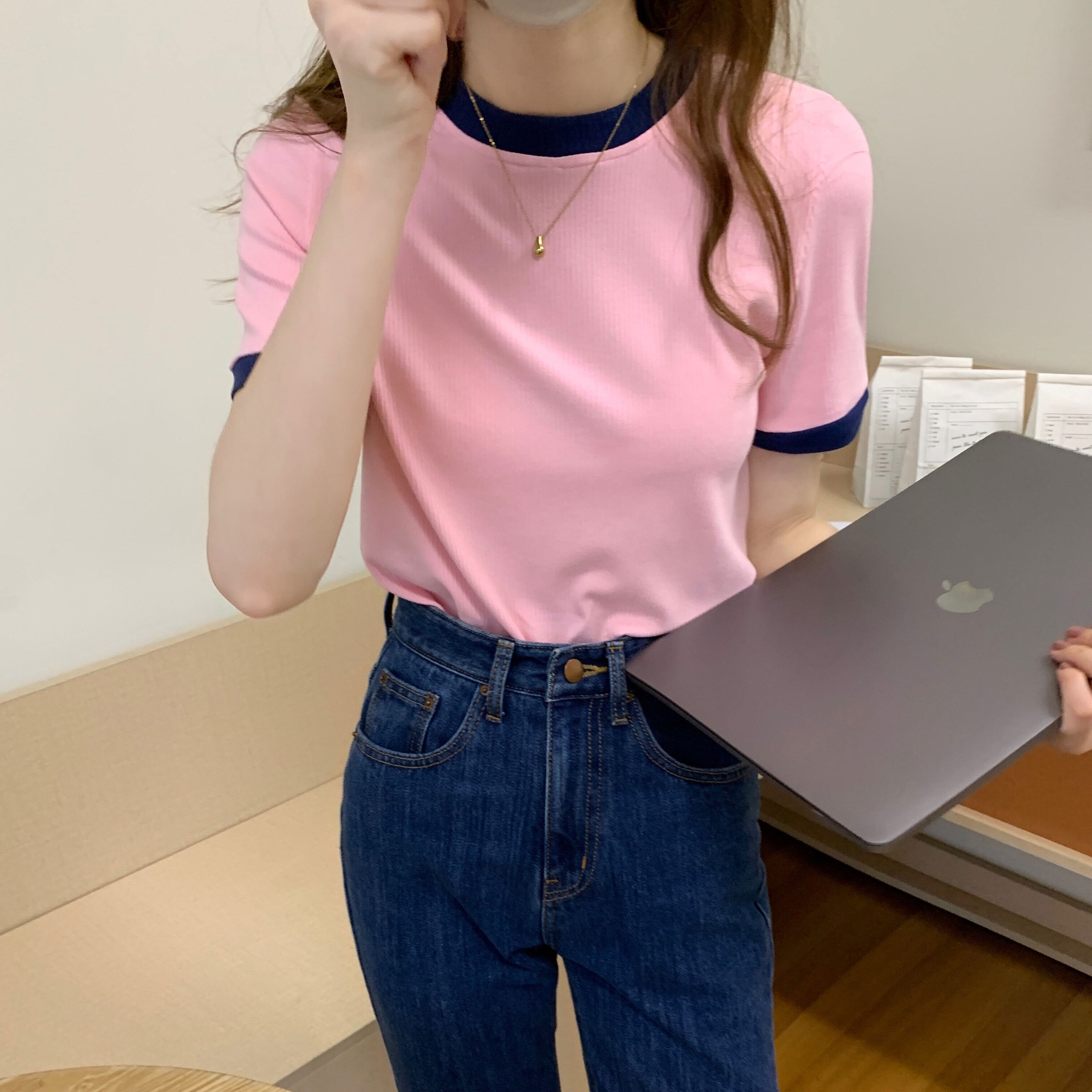 カラースリムセーター Tシャツ 薄手スタイルサマー 夏物 モンロー95726946920