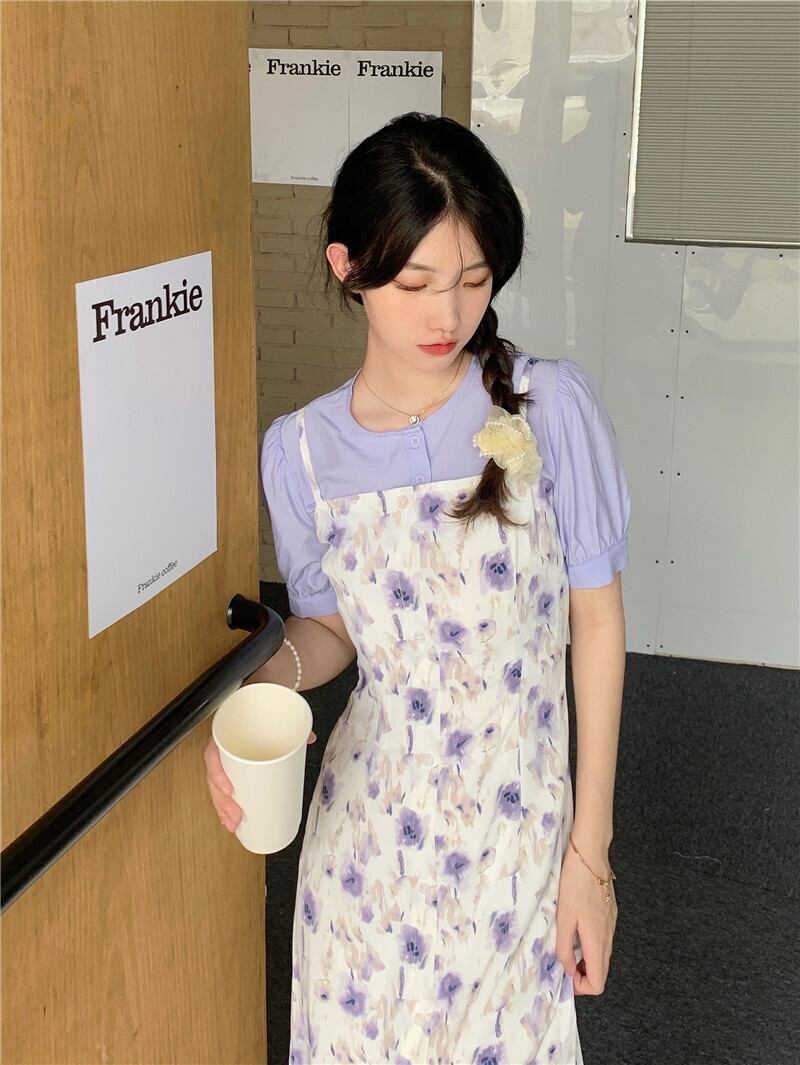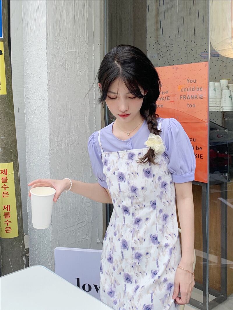 ヤーンサマーショートブラウス ウェストドレス セット 大人ガーリー スウィート キュート カジュアル 夏物 モンロー53362811608