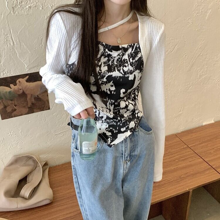 スタンダードTシャツ シャツ スプリングルーズショートトップス ロング レトロ 春物 モンロー73785397575