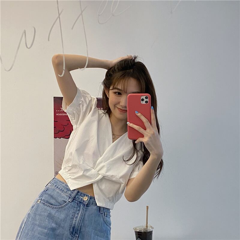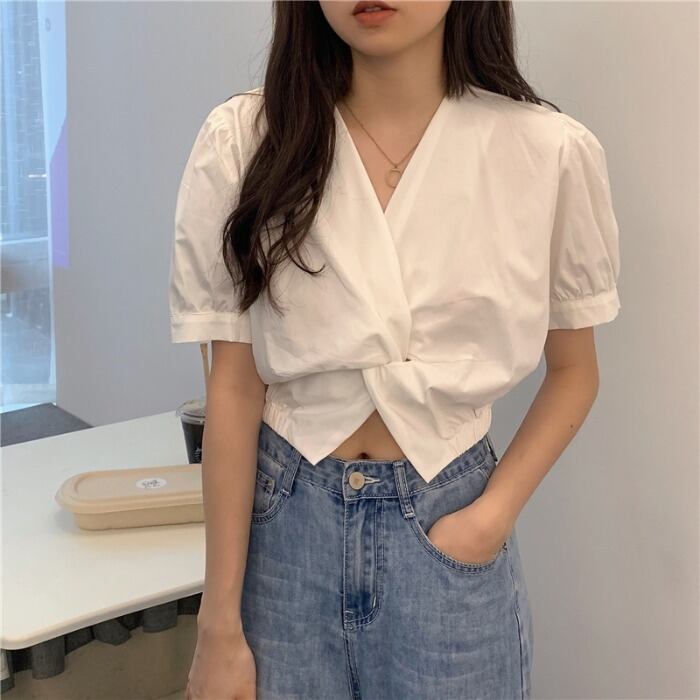 ショートスリーブイエローシャツ サマーVネックトップス 大人ガーリー スウィート キュート カジュアル 夏物 モンロー49574195629
