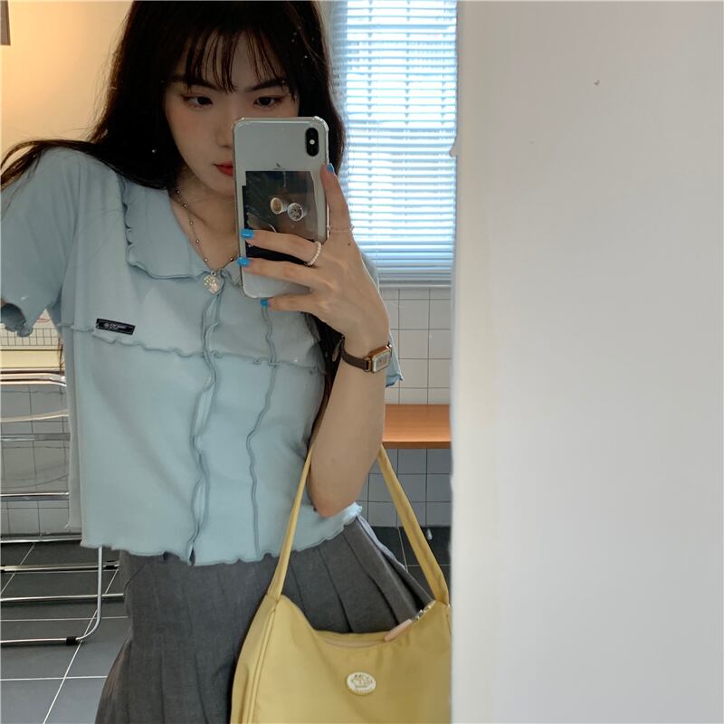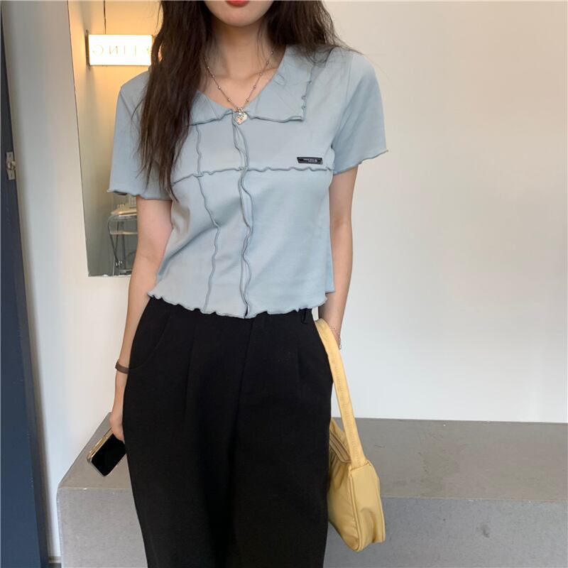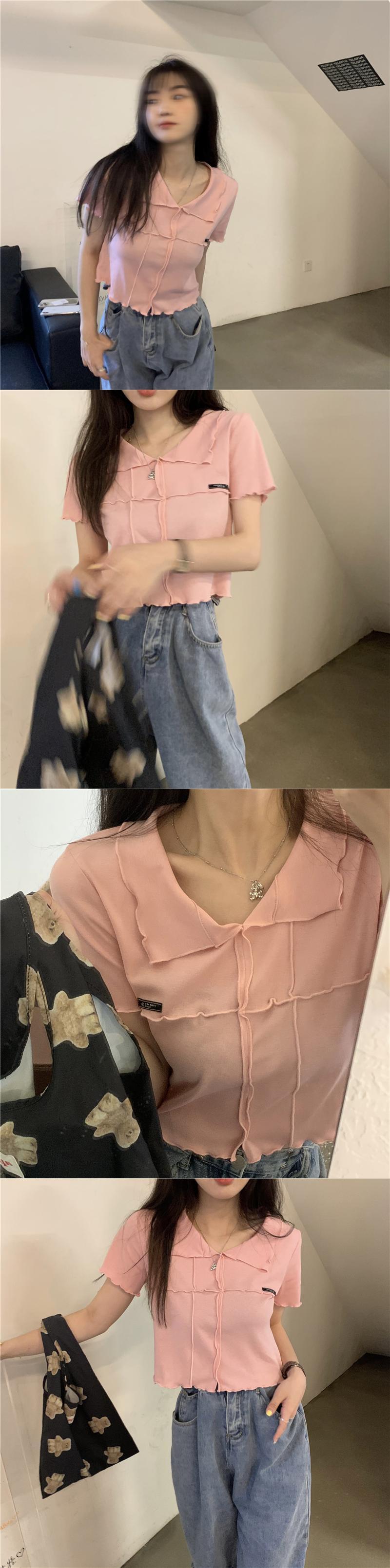 グレーカラーショートTシャツ サマースタイルトップス 夏物 モンロー17428876029