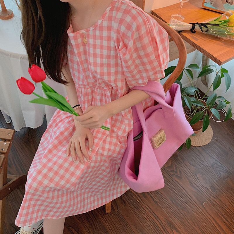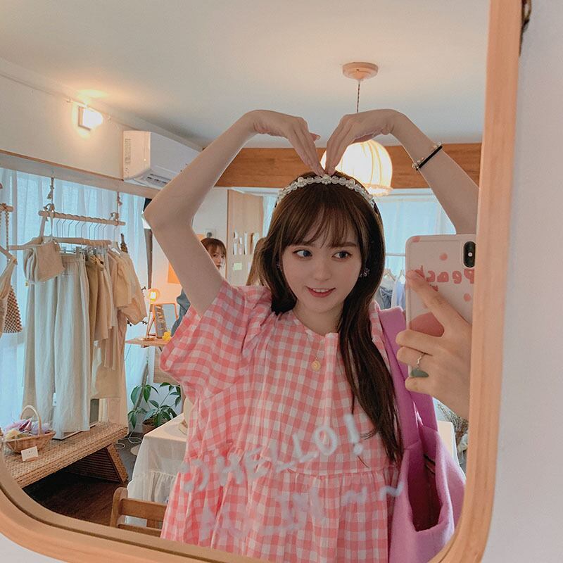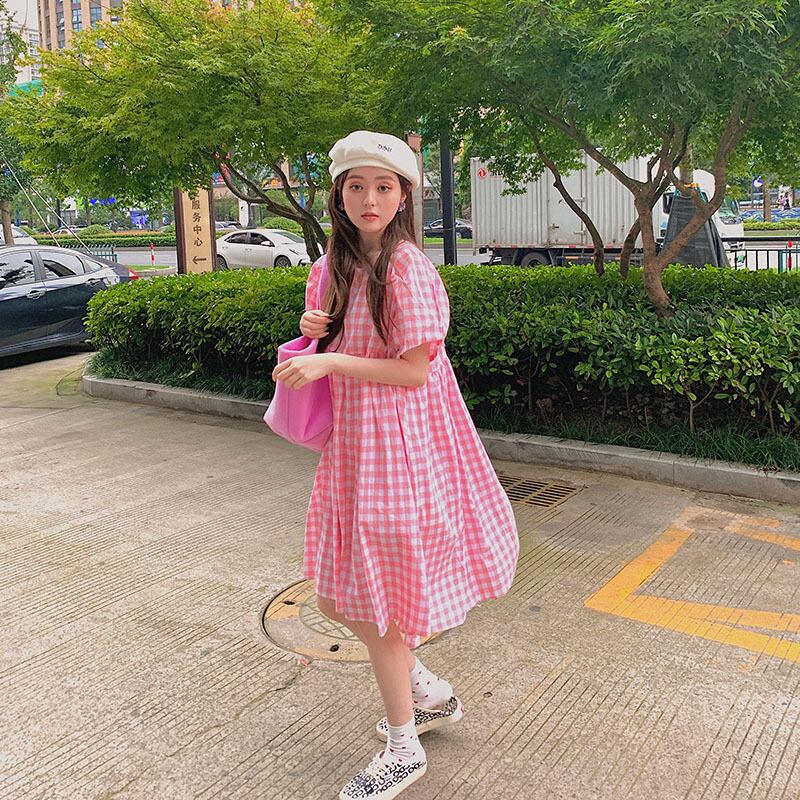 格子柄ドレス ショートスカート サマーAライン ピンク 大人ガーリー スウィート キュート カジュアル 夏物 モンロー10484253618