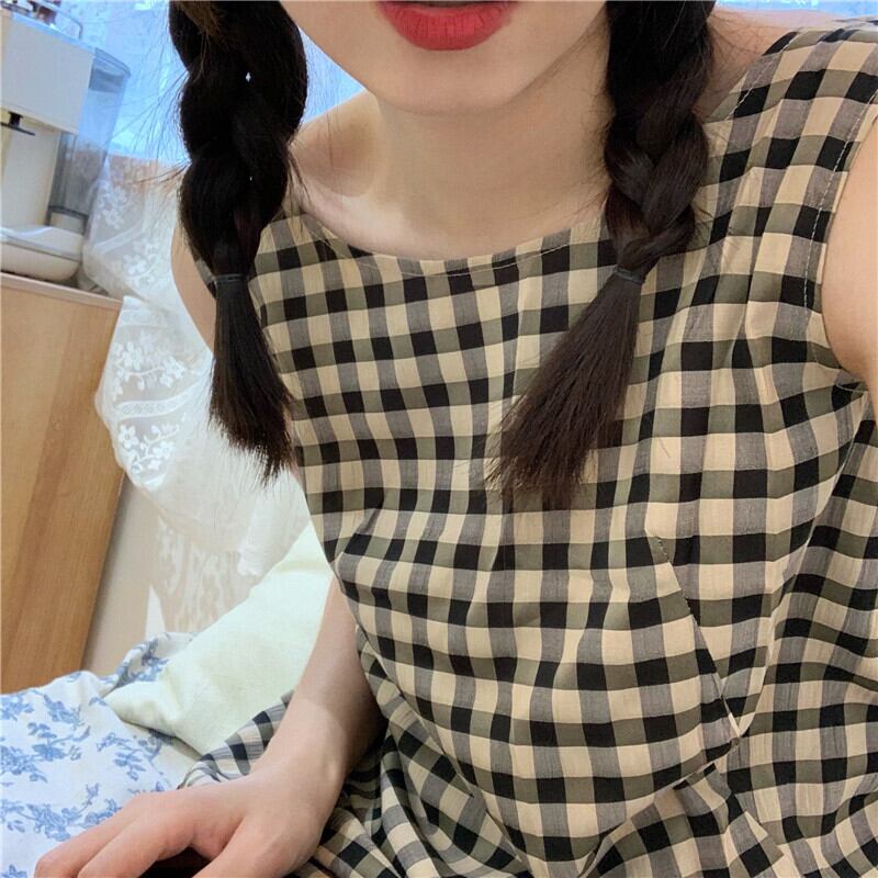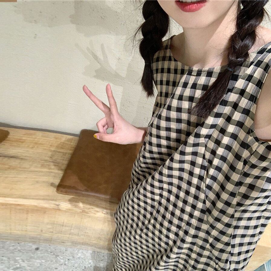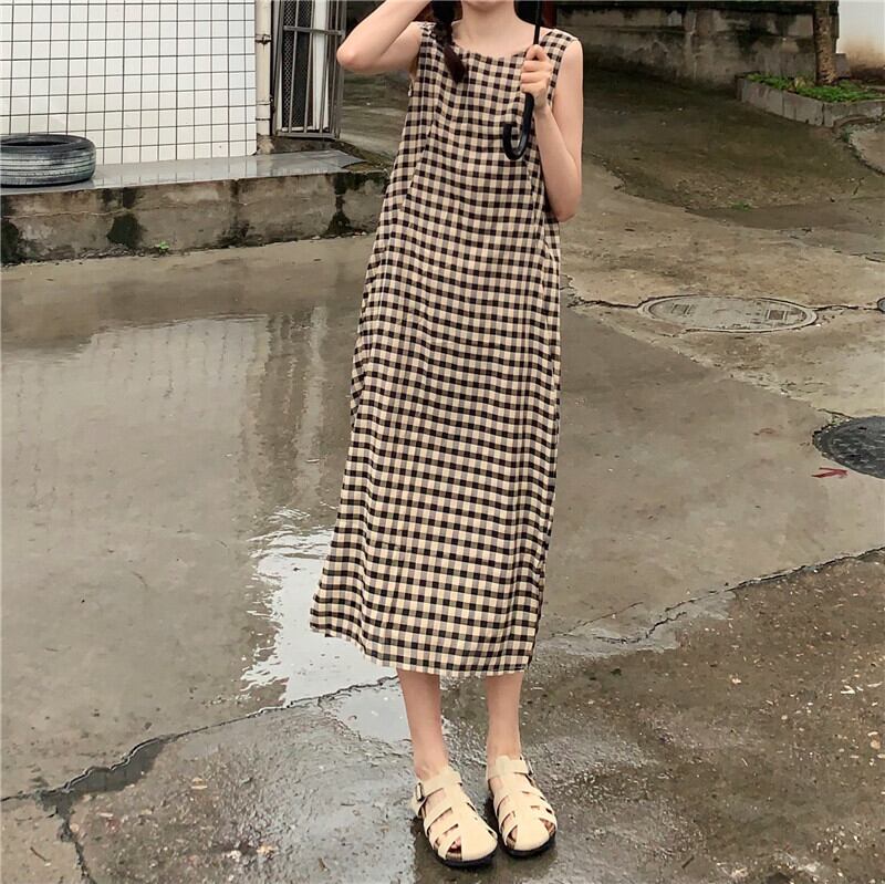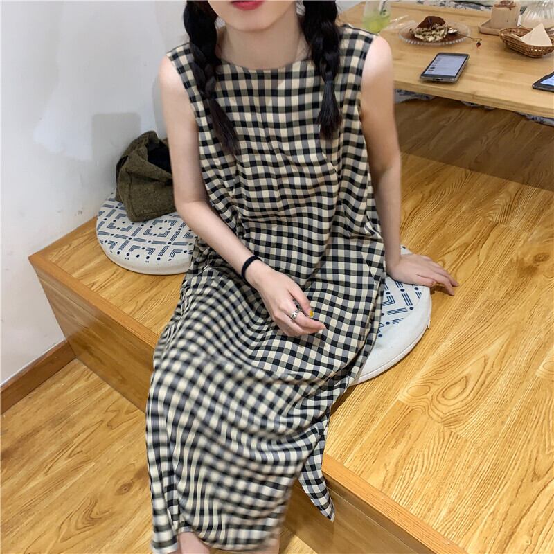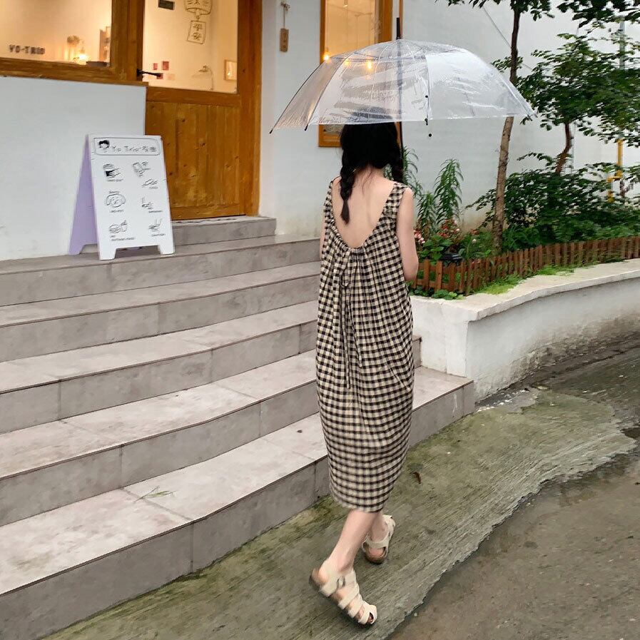 ホルター格子柄ドレス サマーノースリーブロングスカート 大人ガーリー スウィート キュート カジュアル 夏物 モンロー45013654368