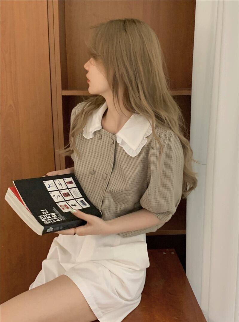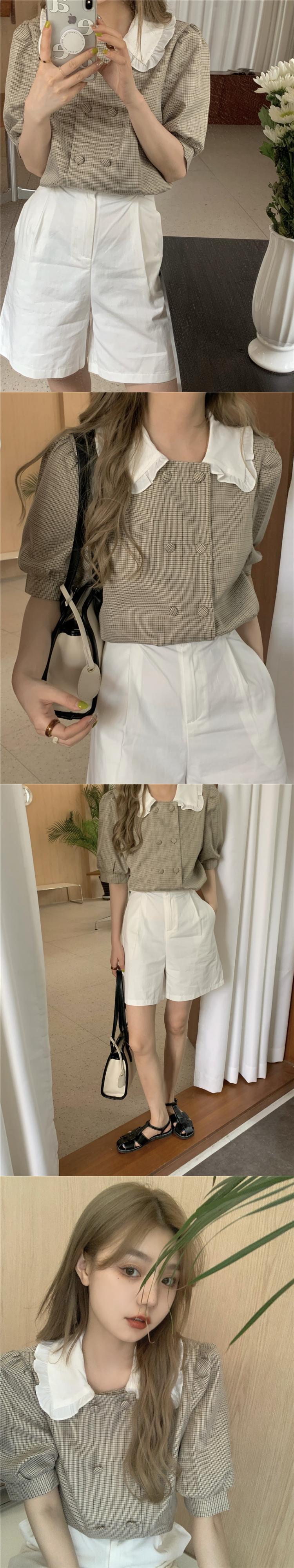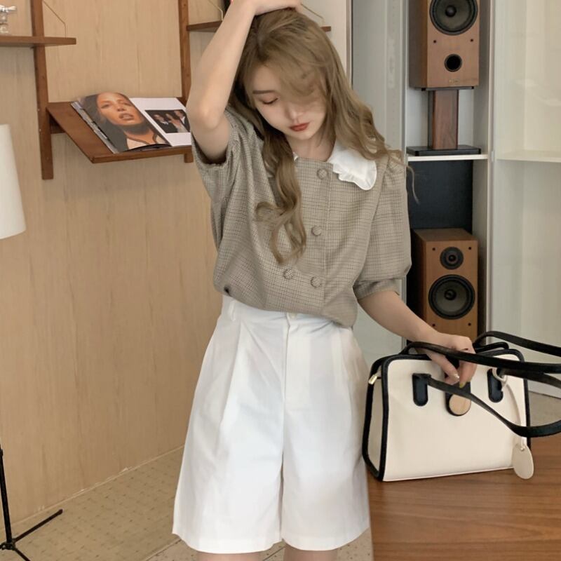 スタイルサマー格子柄シャツ ワイドレッグショーツ ストリート 夏物 ブルマー ワイドパンツ モンロー86197821527